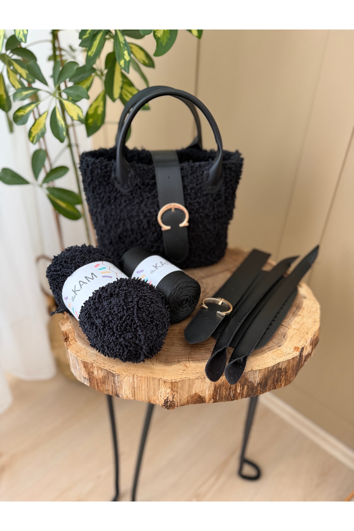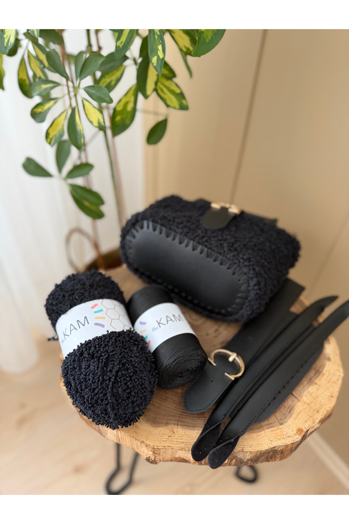 Floransa Siyah Çanta Örgü Kiti - Kuzu Ipi / Çanta Tabanı (10X20), Çanta Kulbu, Çanta Örgü Ipi