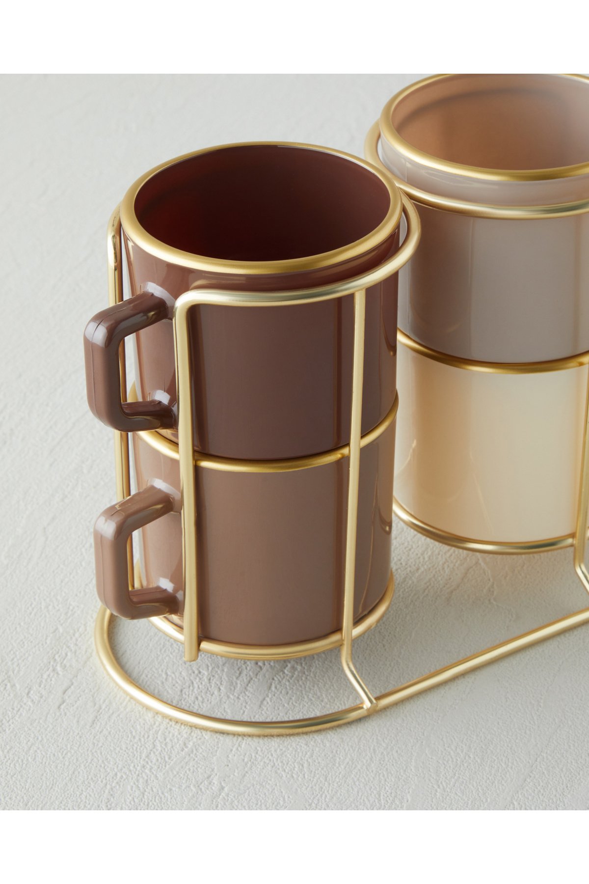 Brownfall Cam Standlı ve 4’lü Kupa 180 ml Kahverengi-Gold
