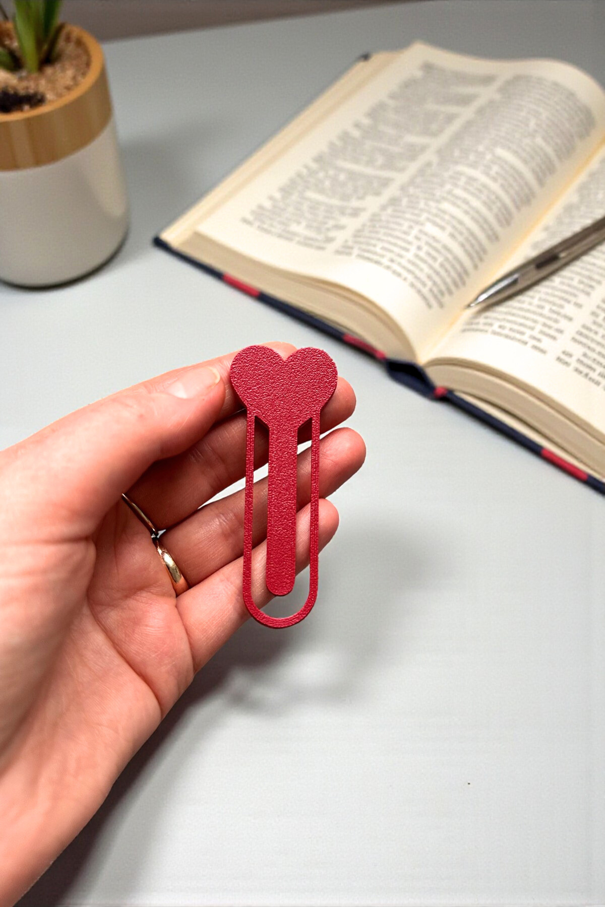 Okuma saatlerinize sevgi katacak kalp figürlü kitap ayracımız, hem modern tasarımı hem de işlevselliği ile öne çıkıyor.