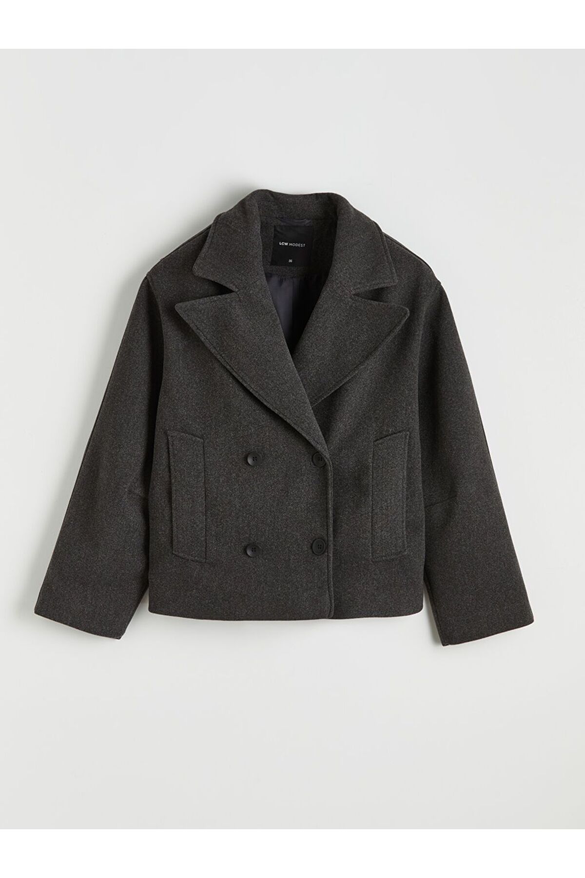 Kruvaze Yaka Oversize Kadın Kaşe Kaban