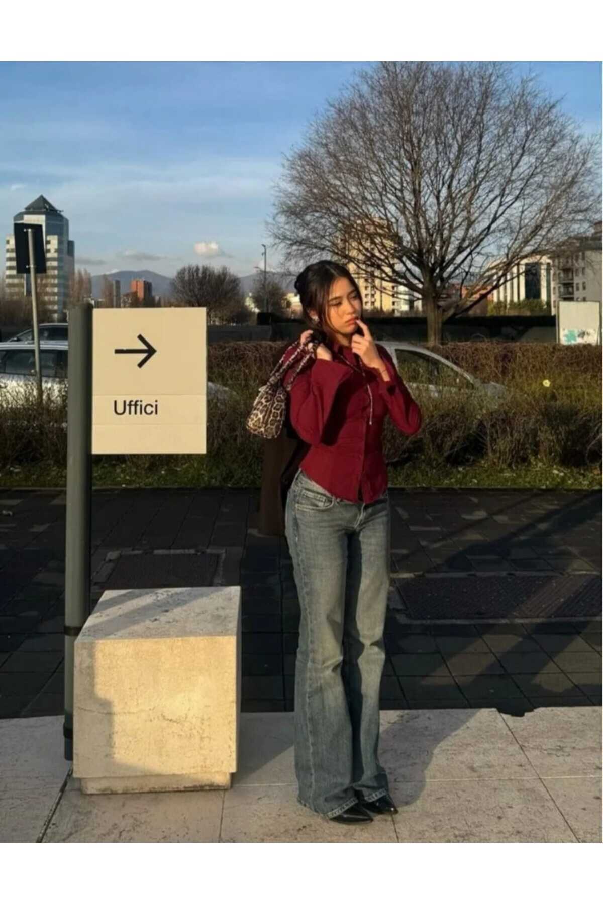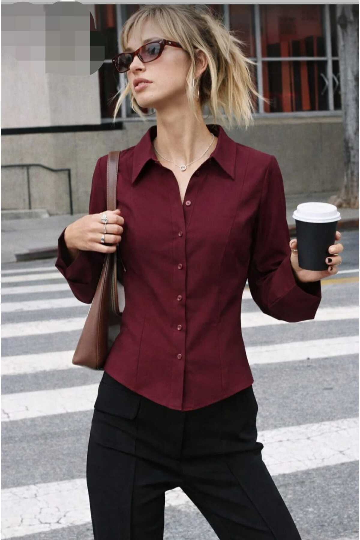 KADIN BORDO BELDEN OTURTMALI İSPANYOL KOL DÜĞMELİ