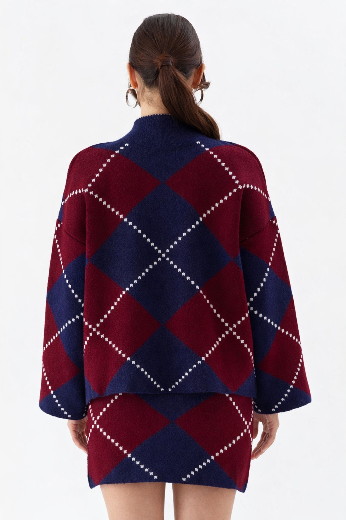 Şık tasarımı ve konforlu yapısıyla öne çıkan baklava desenli triko mini etek takım, günlük kombinlerden özel davetlere kadar geniş bir kullanım alanı sunar.
