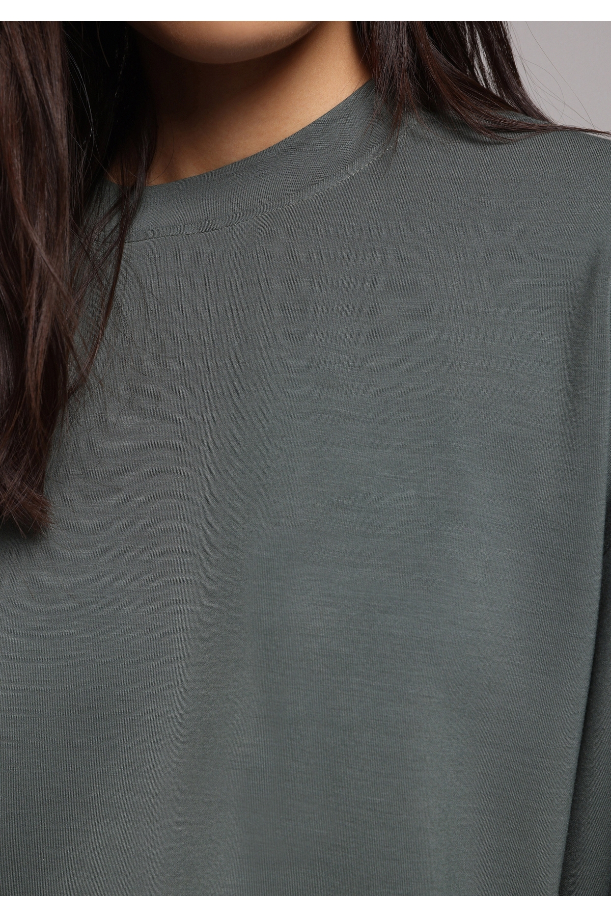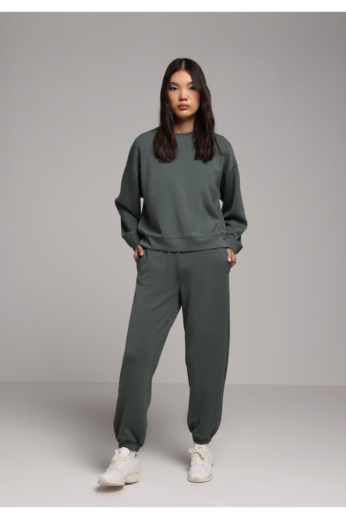 Regular Fit Yuvarlak Yaka Düz Kadın Yeşil Sweatshirt