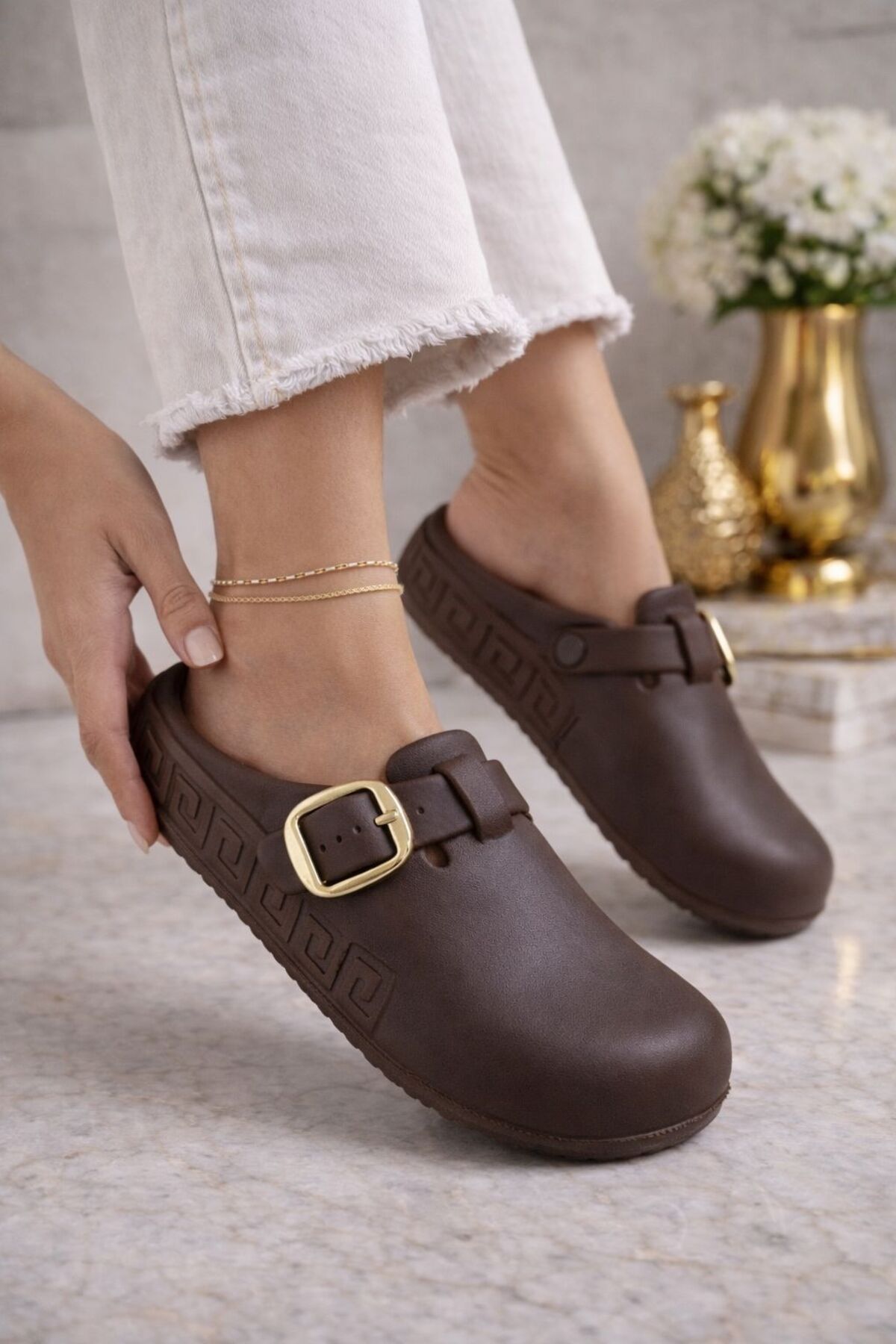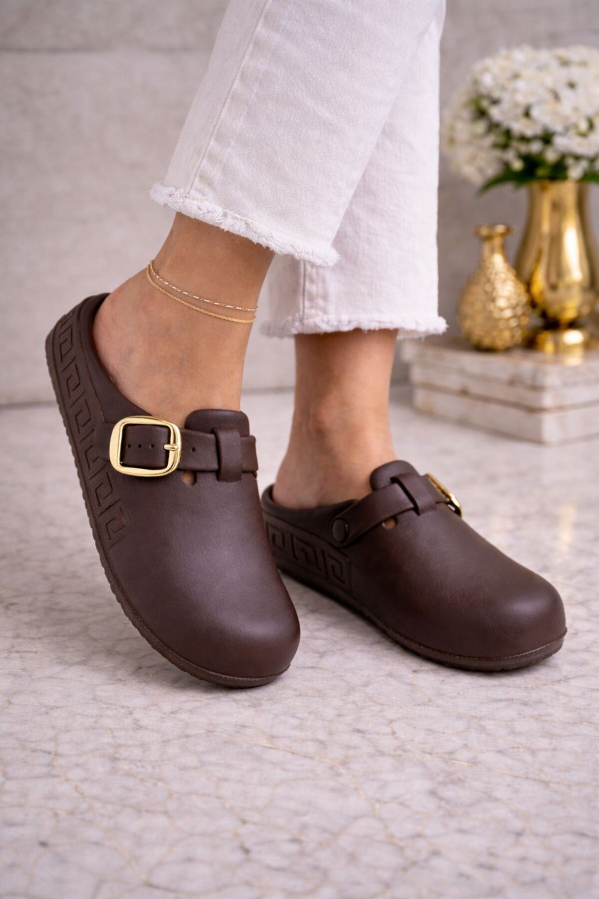Önü Kapalı Masaj Tabanlı Anatomik Yumuşak Günlük Sabo Terlik Kahverengi