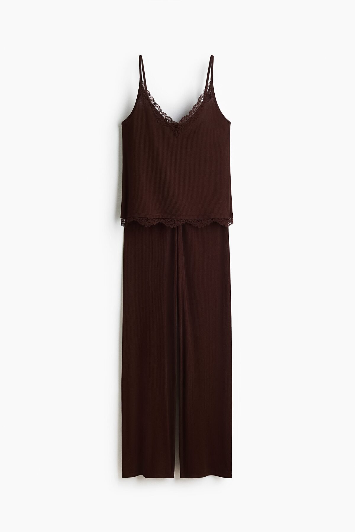 Dantel Şeritli ve Ribanalı Pijama Takımı