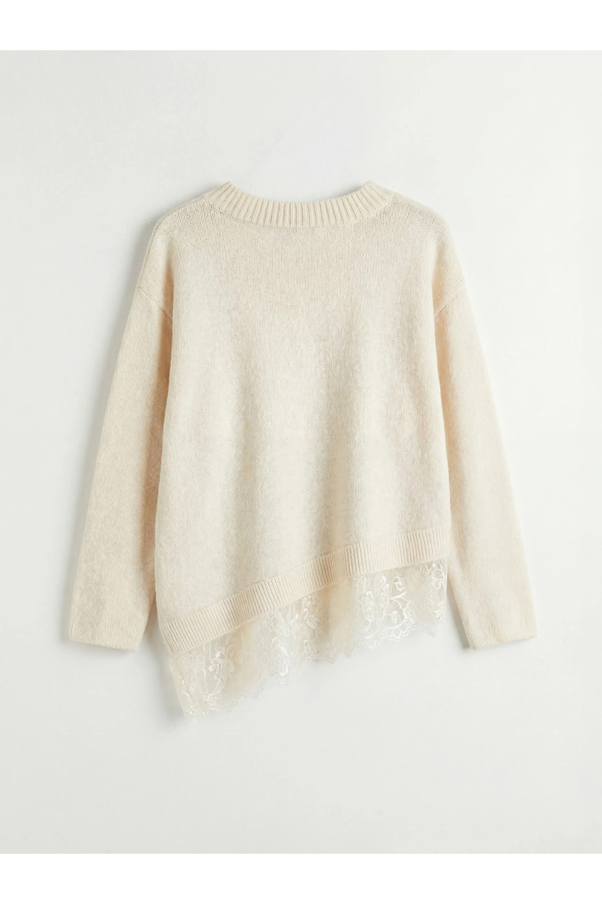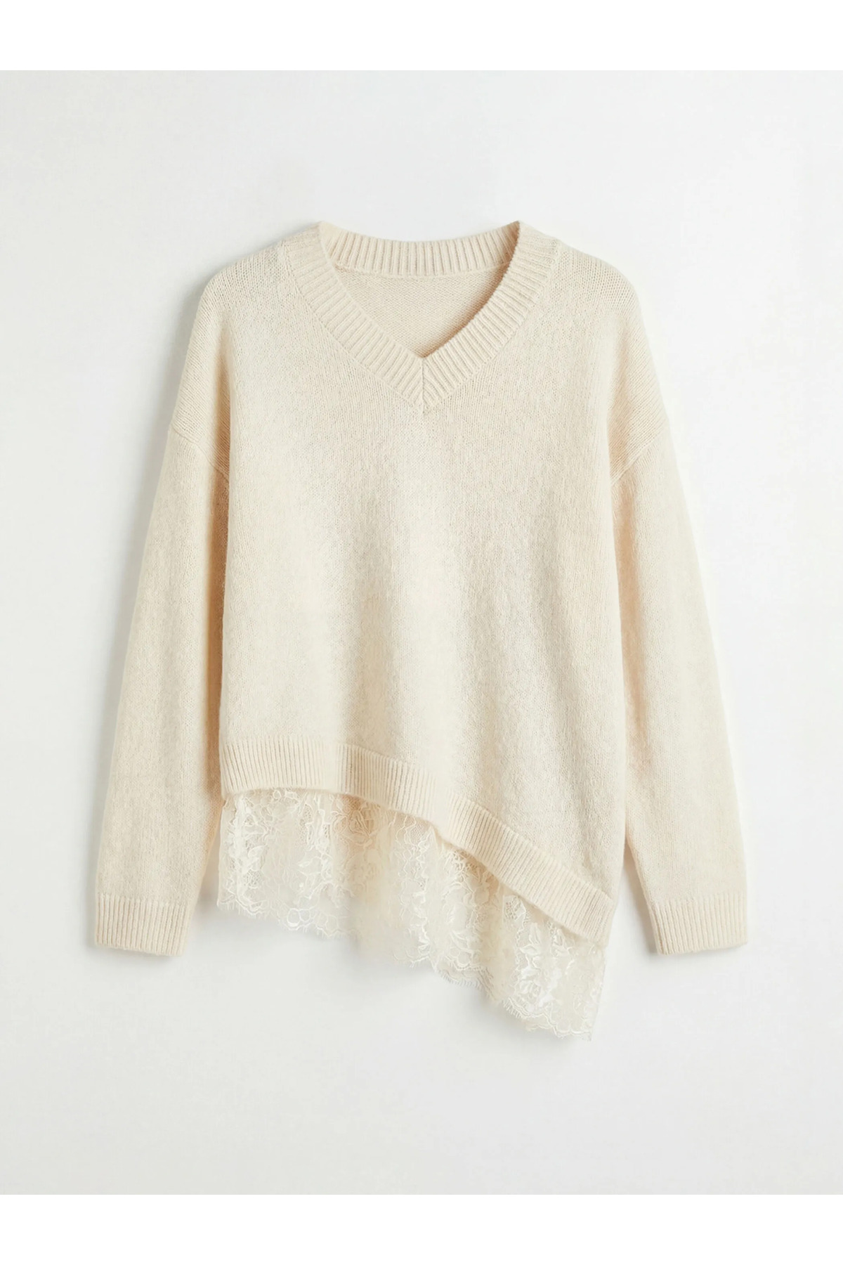 LCW Vision Ekru V Yaka Dantel Detaylı Kadın Triko Kazak
