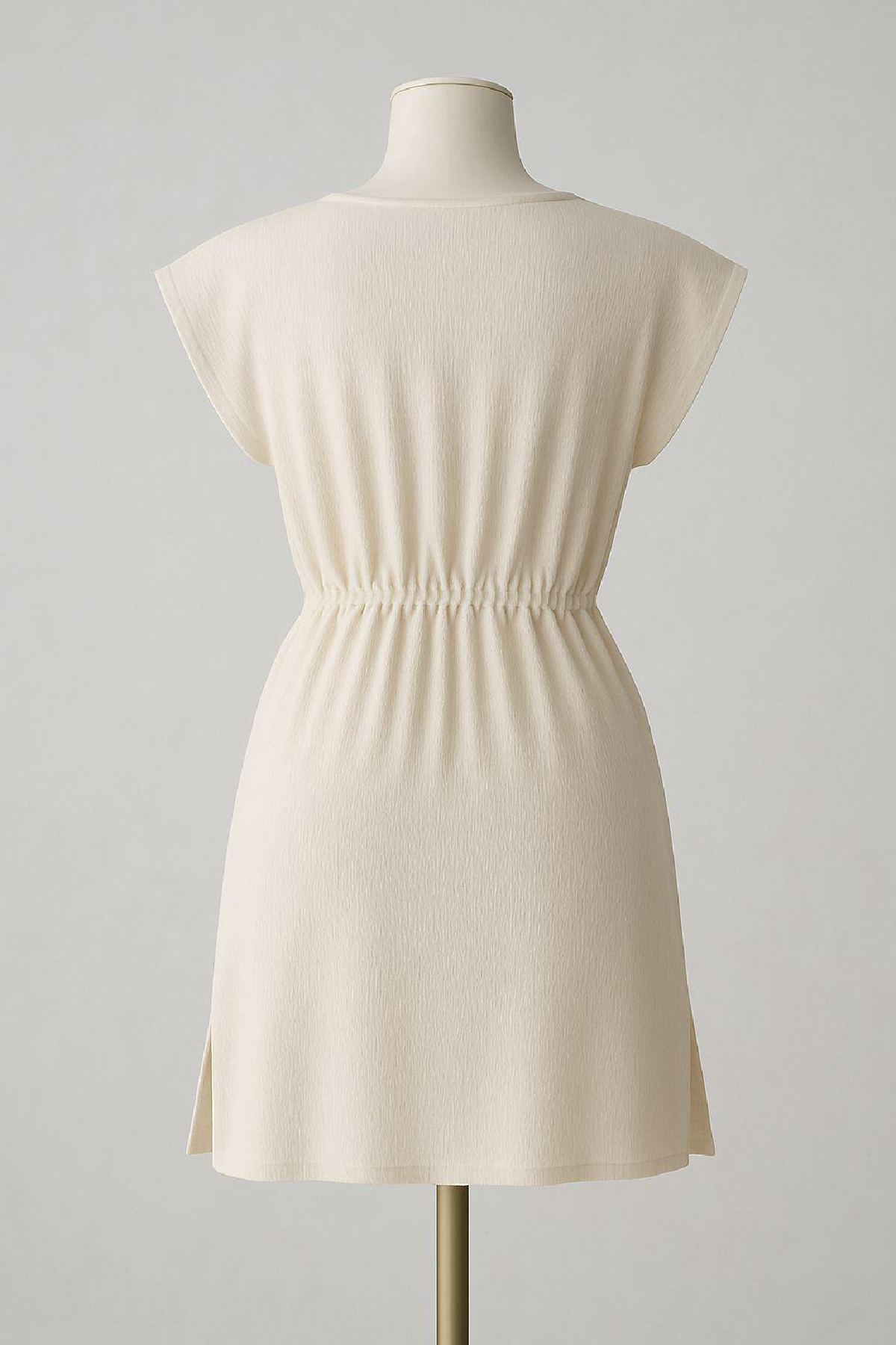 V yaka tasarımı sayesinde zarif bir görünüm kazandıran bu mini elbise, sandalet, terlik ya da topuklu ayakkabılarla kolayca kombinlenebilir.