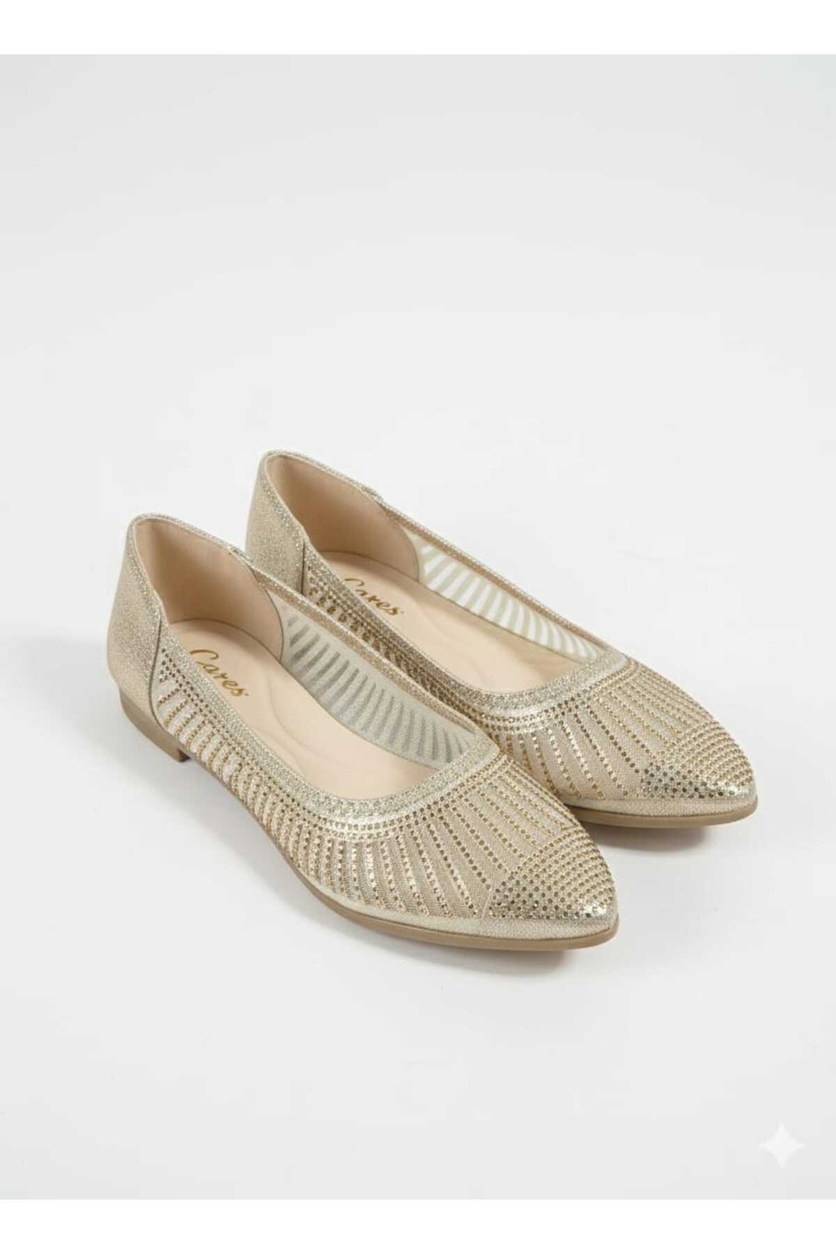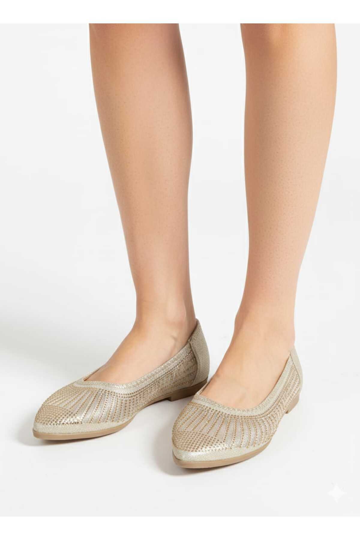 Kadın Siyah Küçük Taşlı Fileli Babet