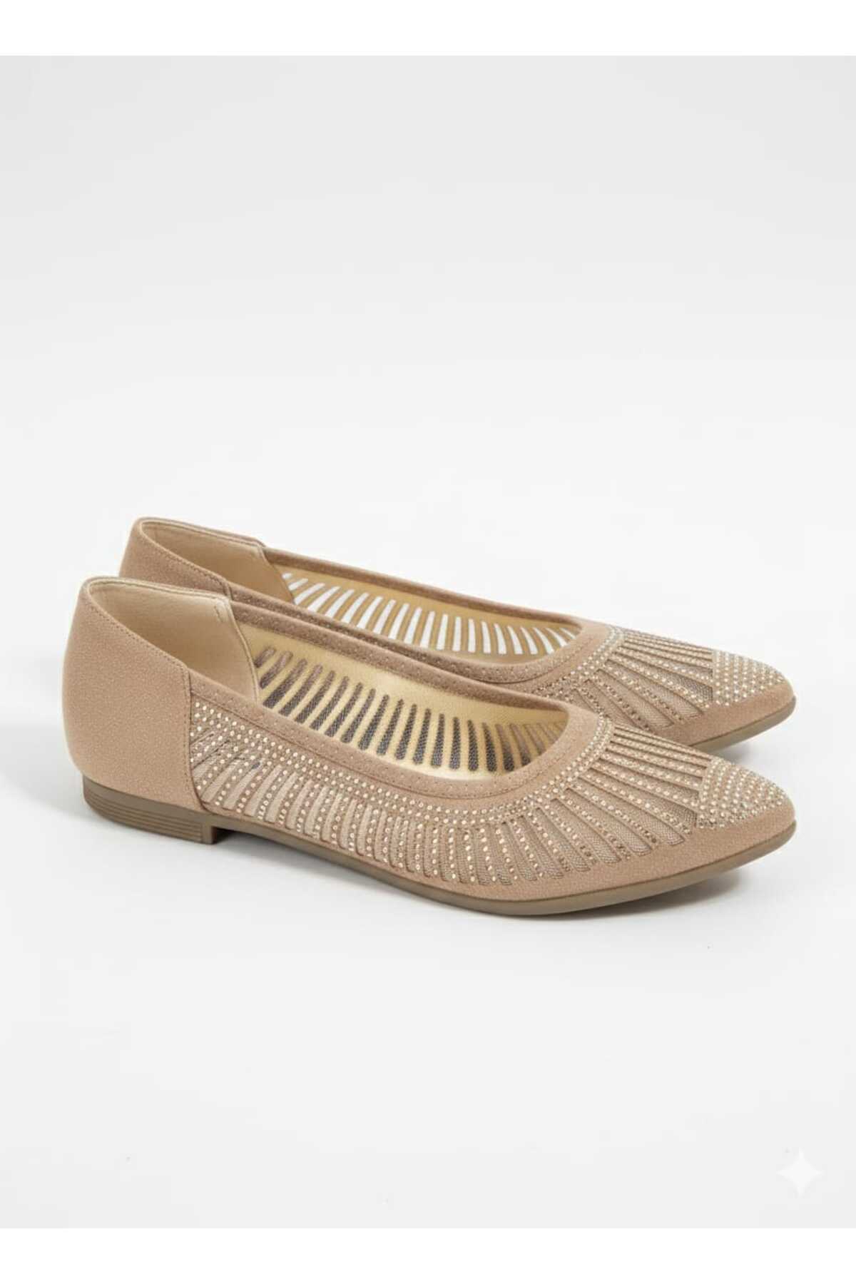 Kadın Siyah Küçük Taşlı Fileli Babet