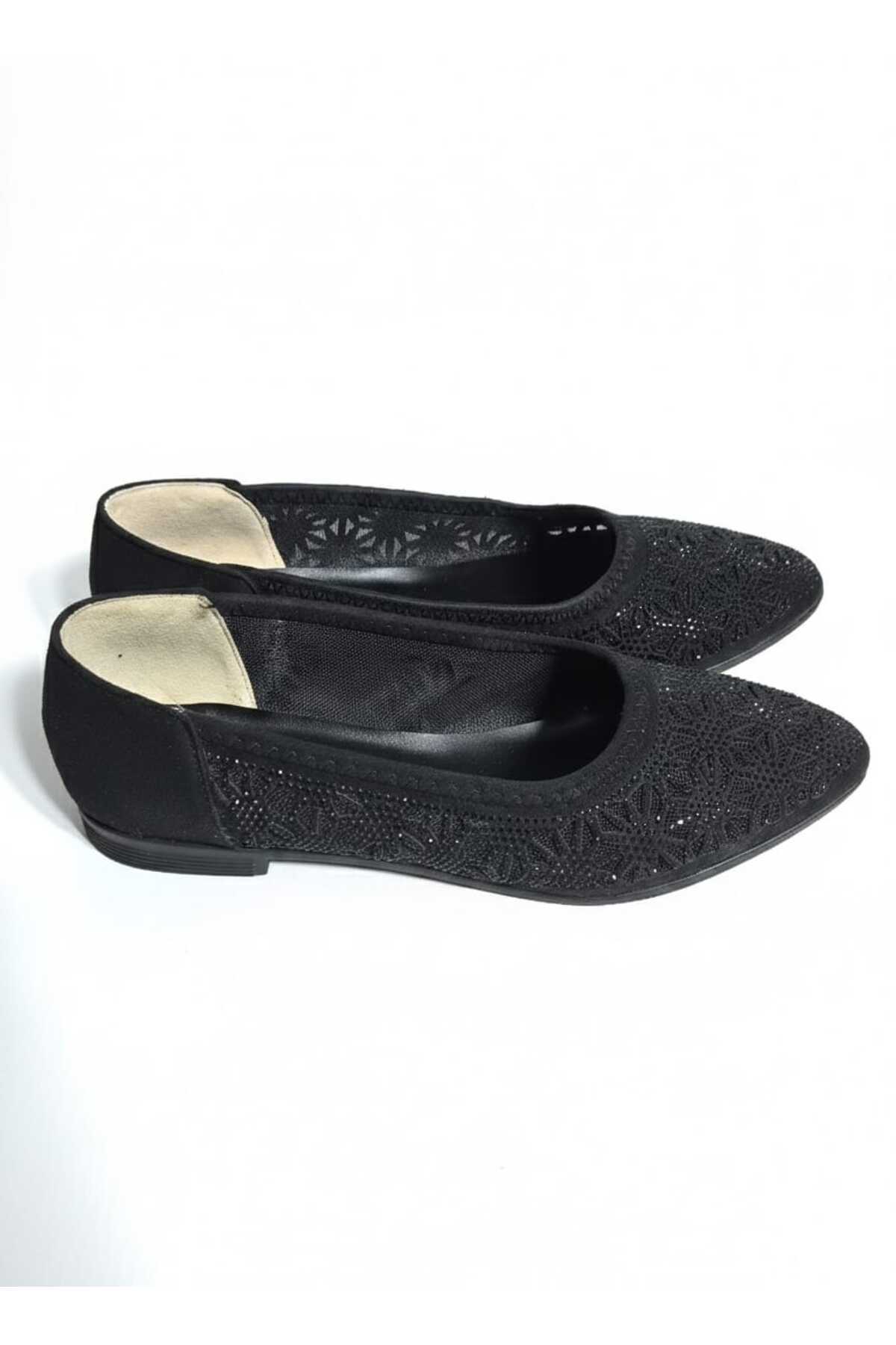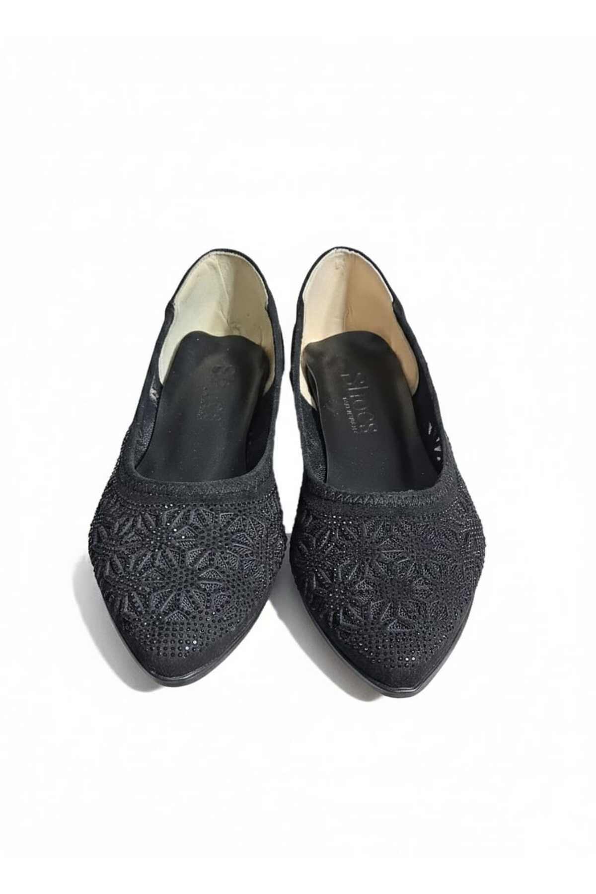 Kadın Siyah Küçük Taşlı Fileli Babet