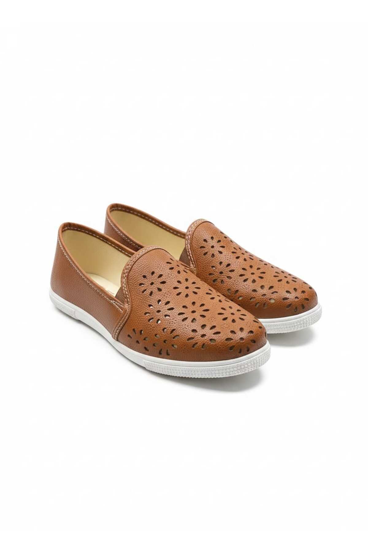 Avrupa Deri Lazer Kesim Şık Rahat Hafif Yandan Lastikli Yapısıyla Ayağınızı Kavrayan Babet