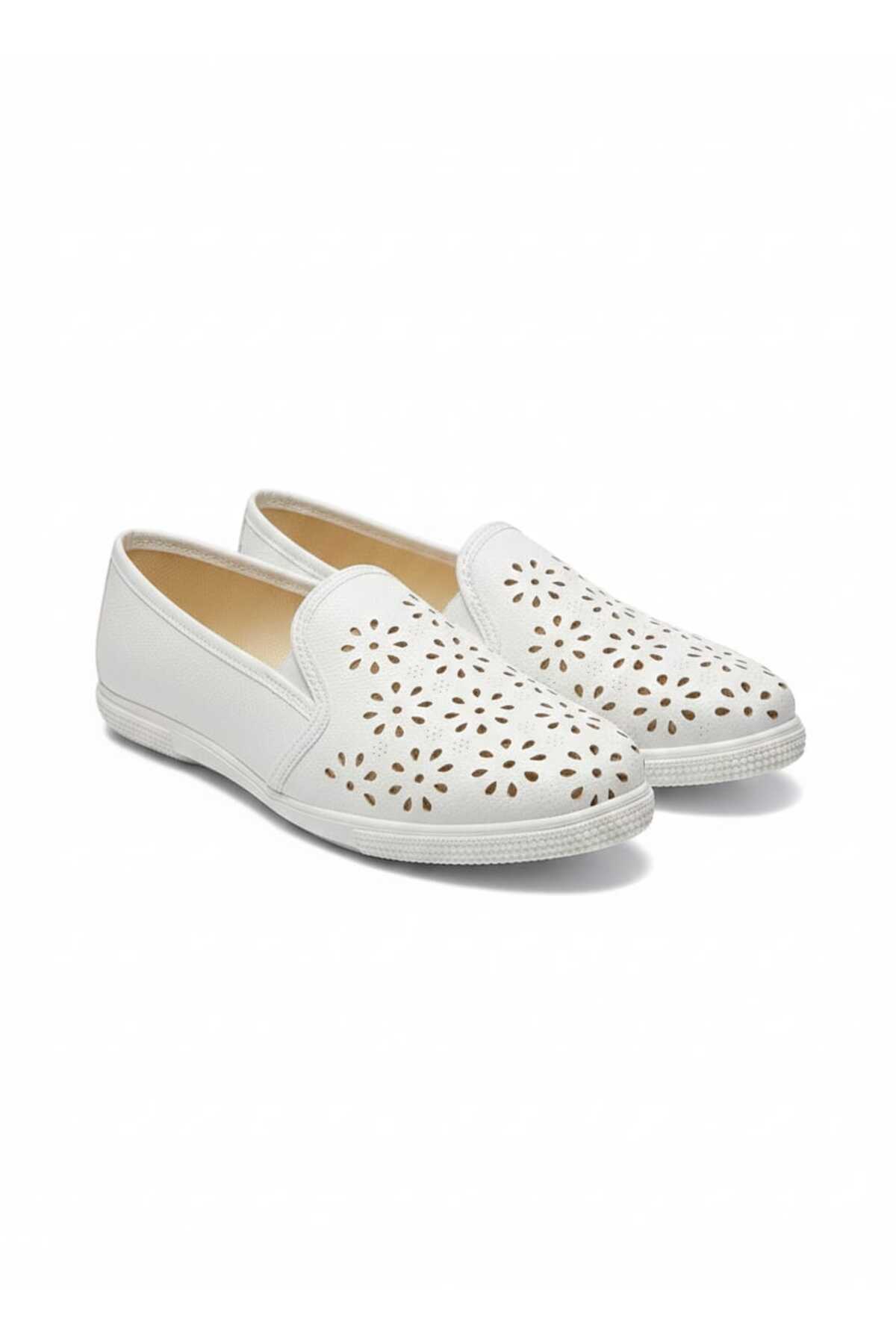Avrupa Deri Lazer Kesim Şık Rahat Hafif Yandan Lastikli Yapısıyla Ayağınızı Kavrayan Babet