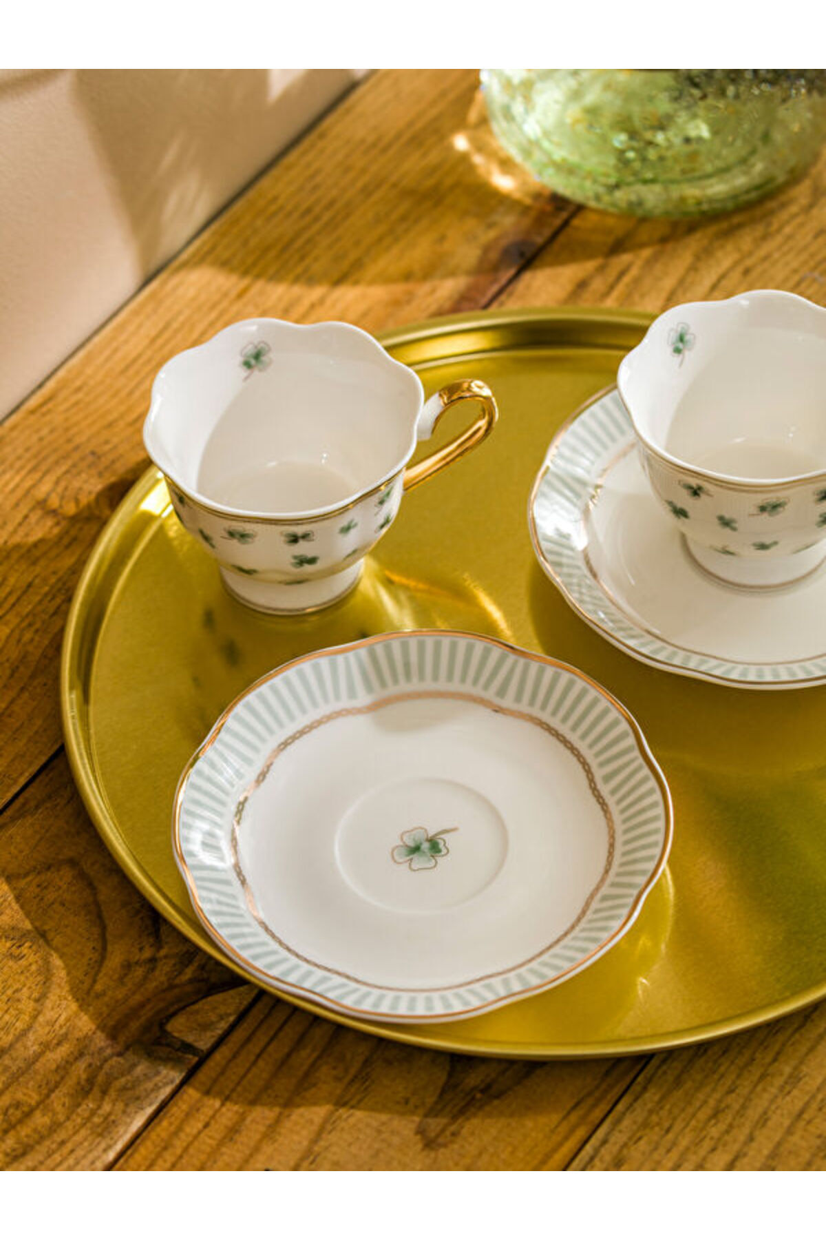 UZG STORE'dan Modern Parçalar Yonca Baskılı 2 Kişilik Porselen Kahve Fincan Takımı 90 ml