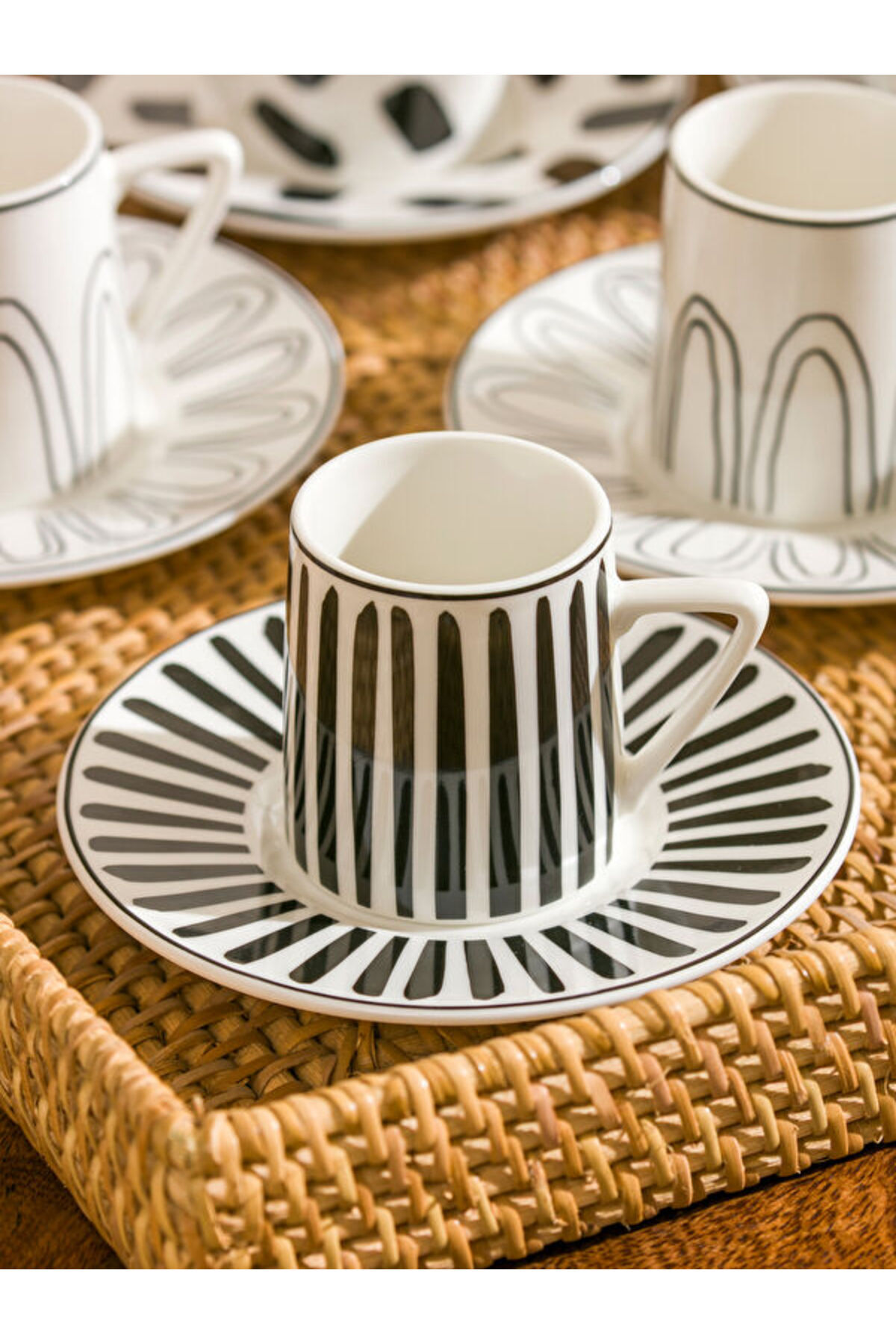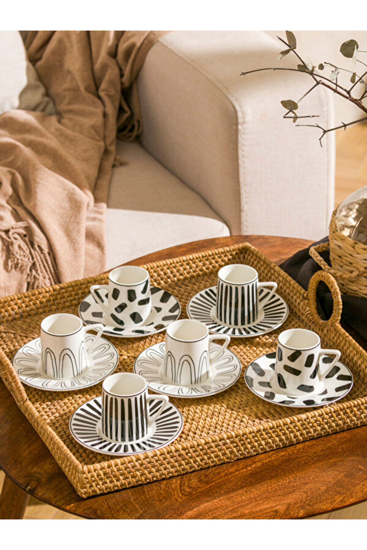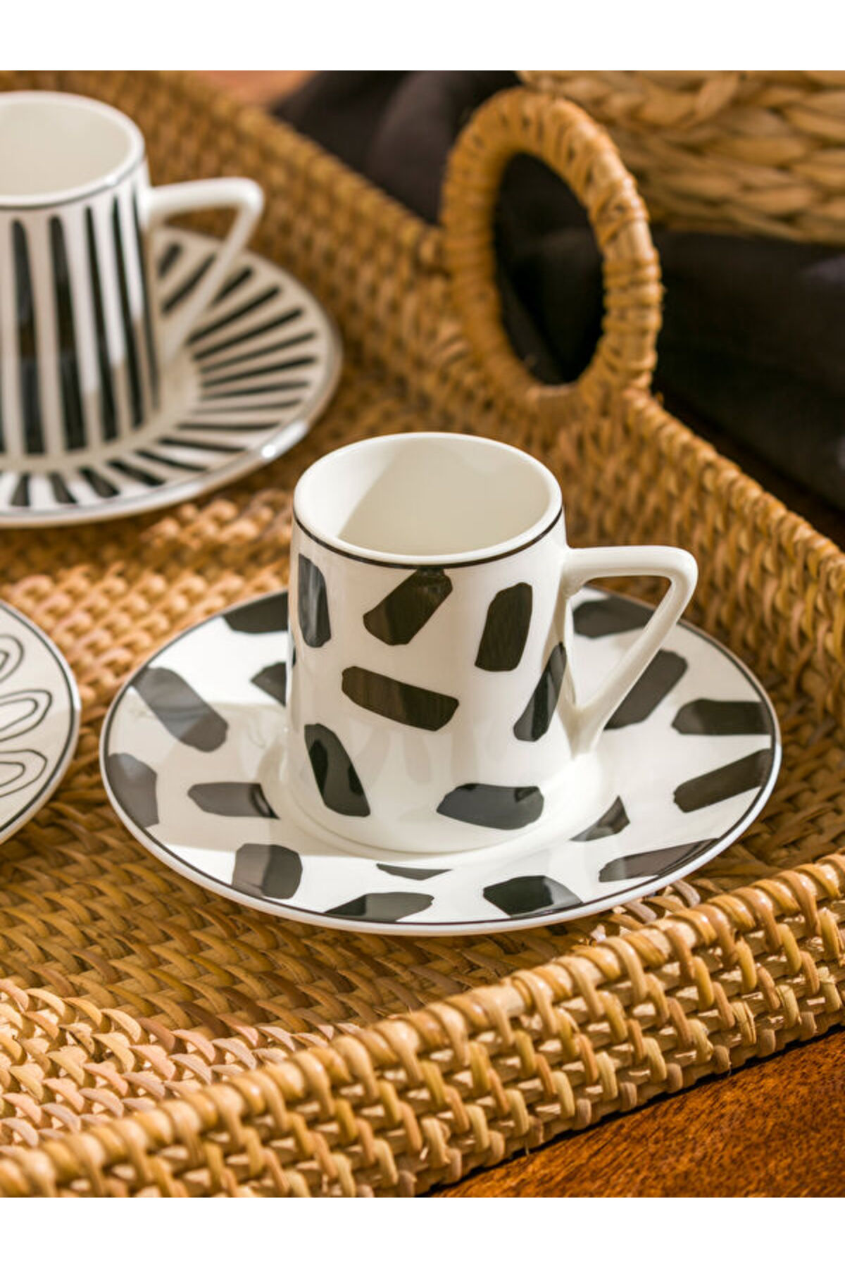 UZG STORE'dan Modern Parçalar 6 Kişilik Baskılı Porselen Kahve Fincan Takımı 90 ml