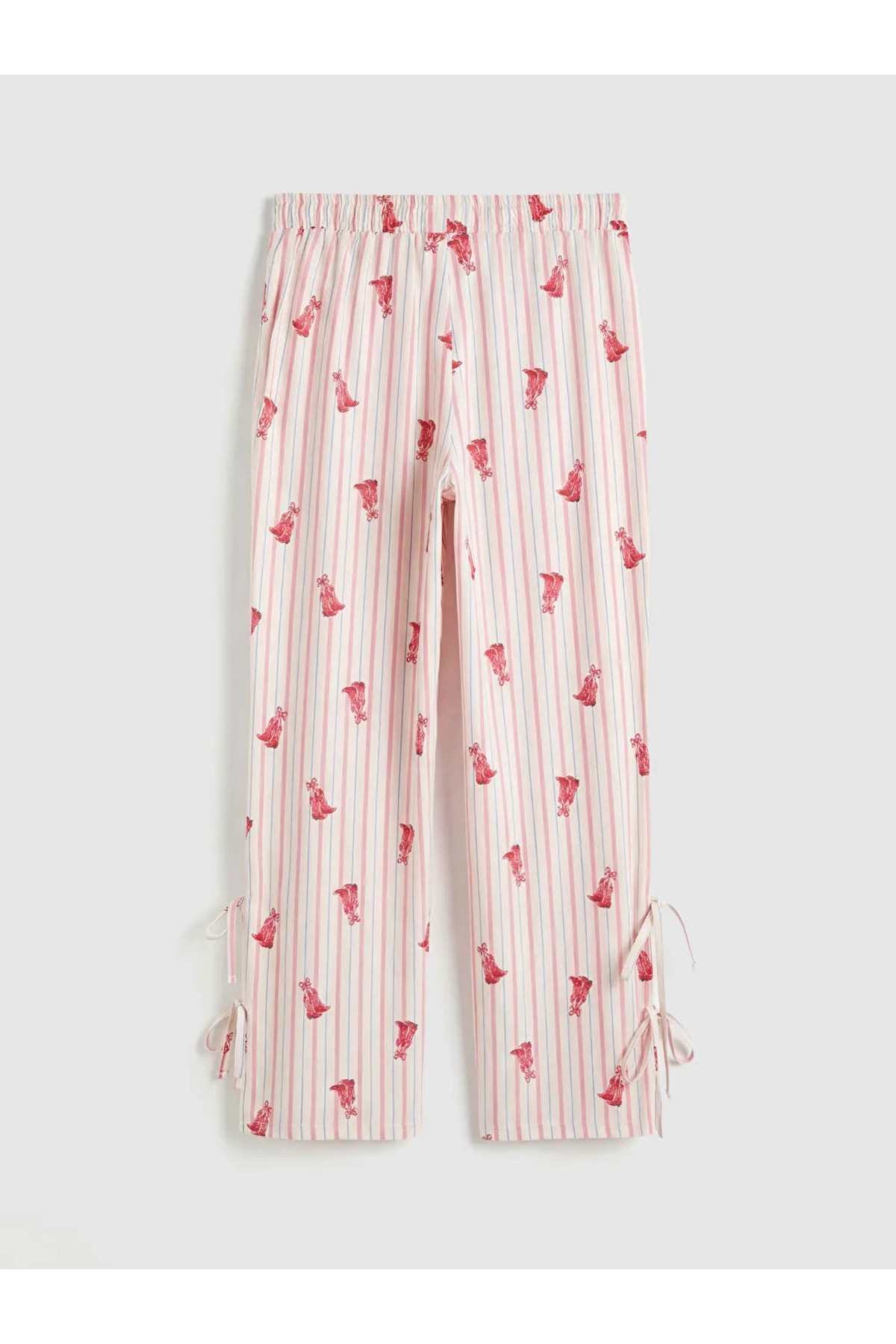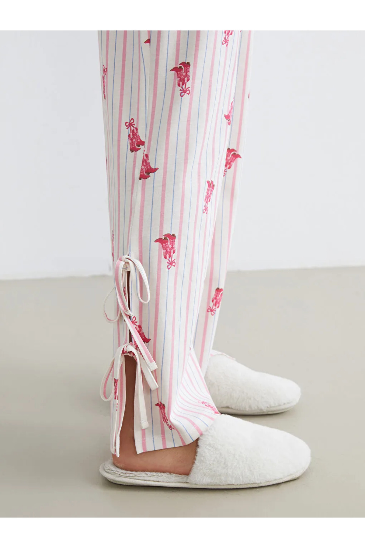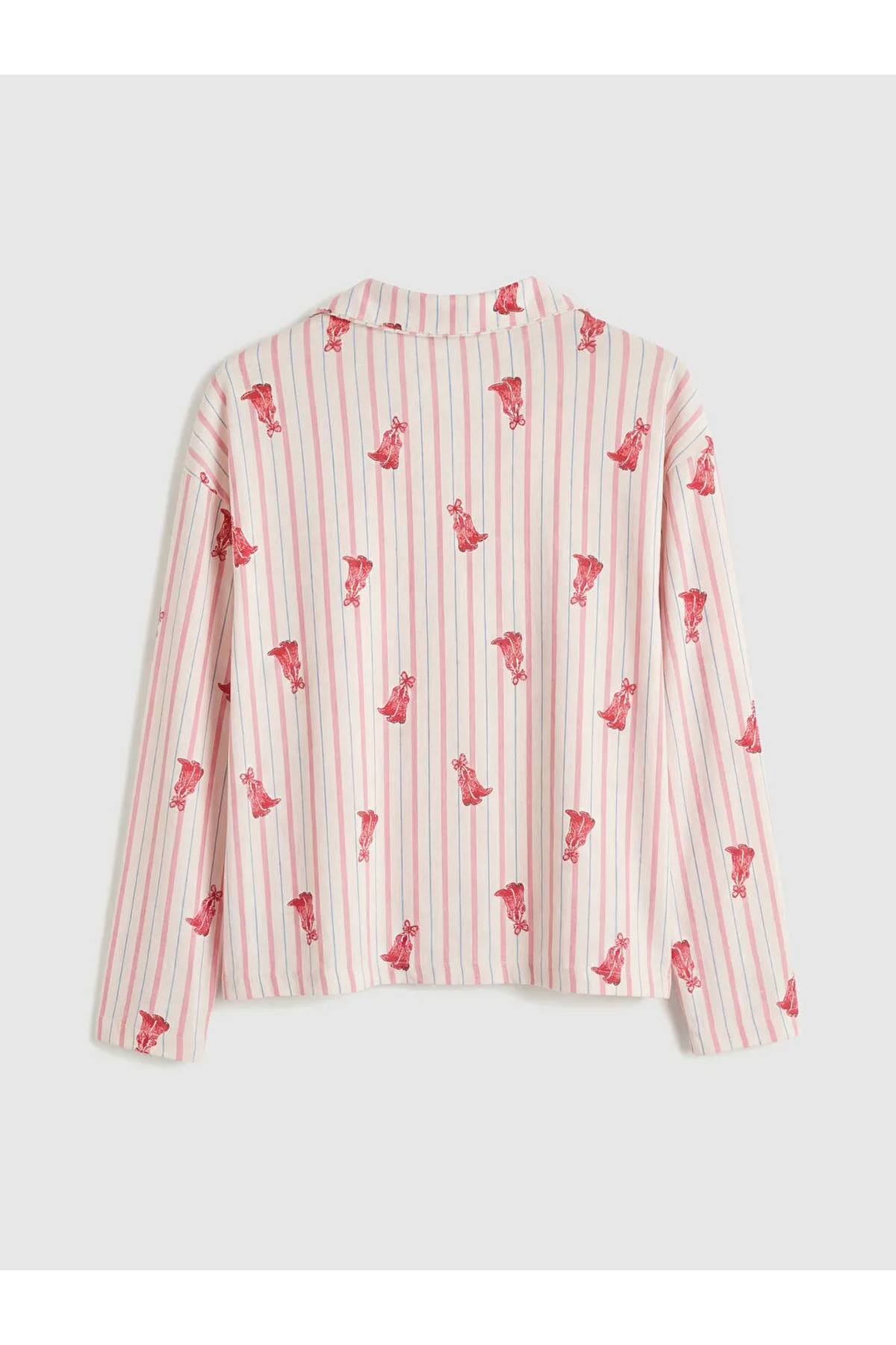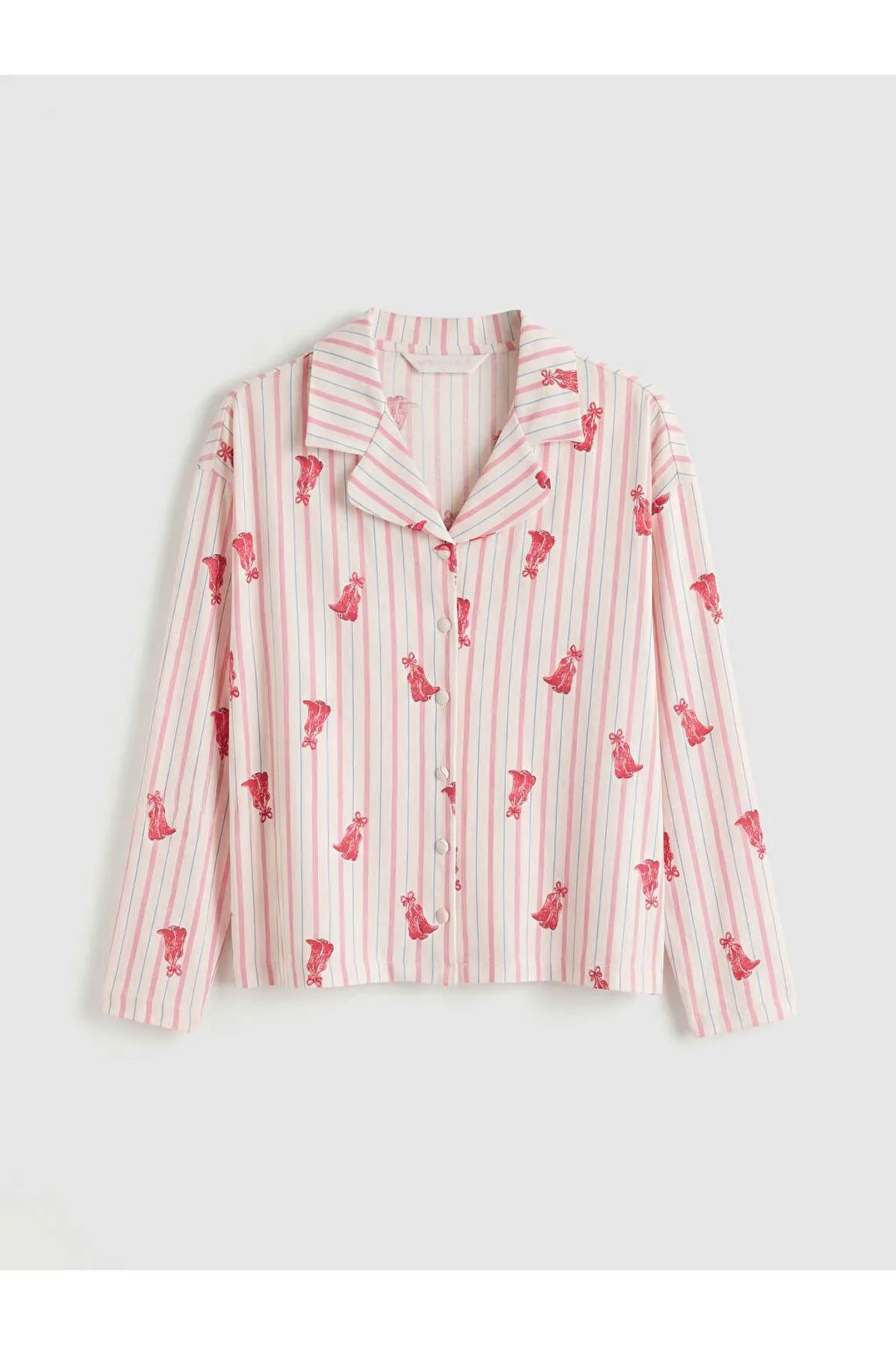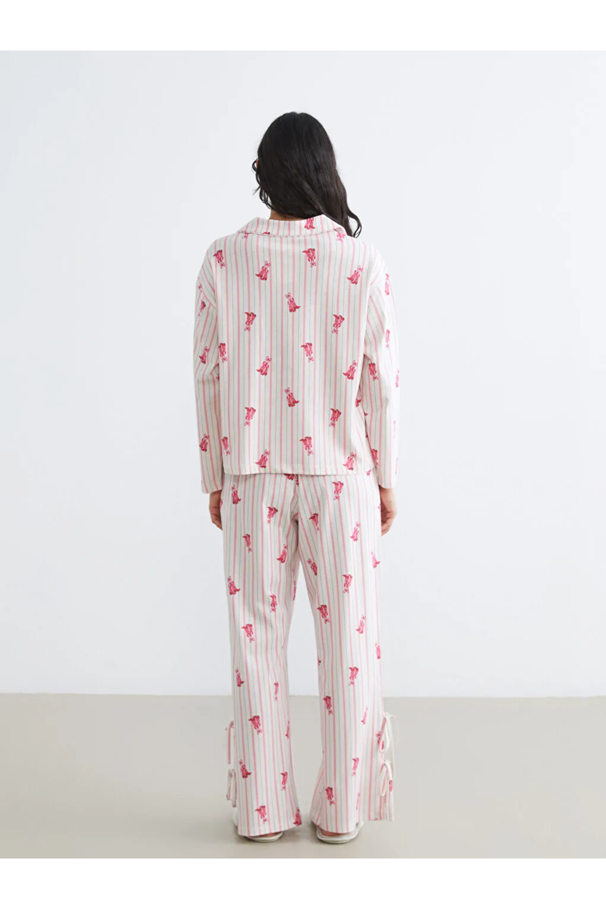 LCW DREAM kalitesiyle üretilmiş Ekru Gömlek Yaka Desenli Kadın Pijama Takım.
