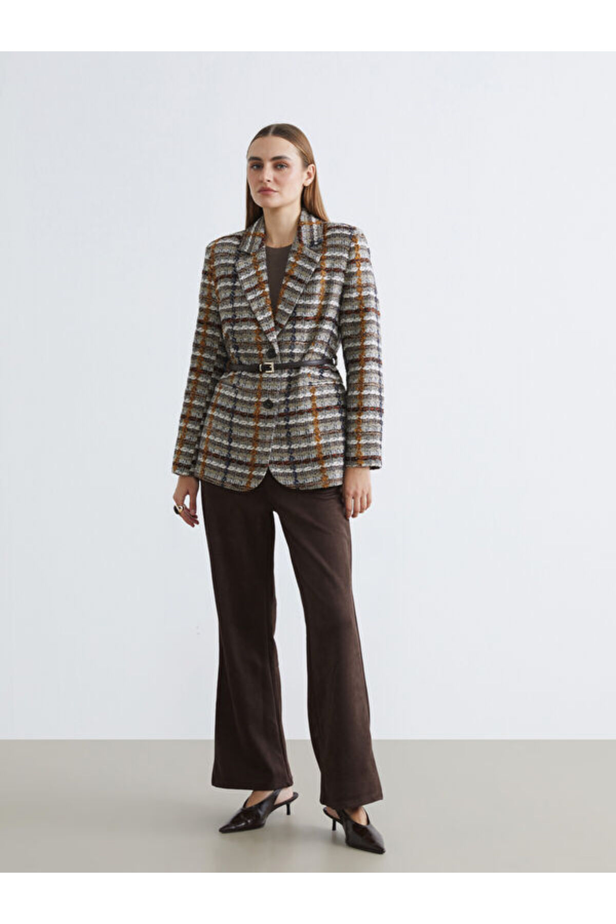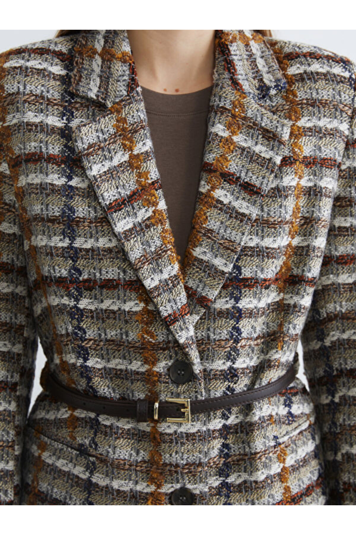 RMZ GİYİM FARKIYLA Kareli Dokulu Kemerli Kadın Tüvit Blazer Ceket