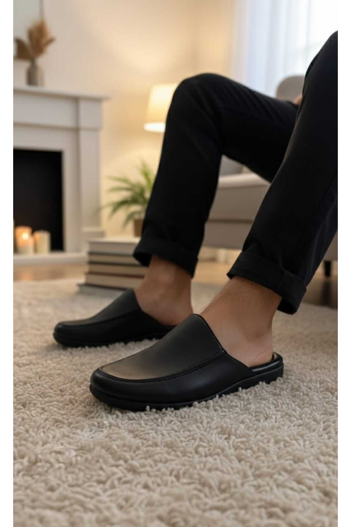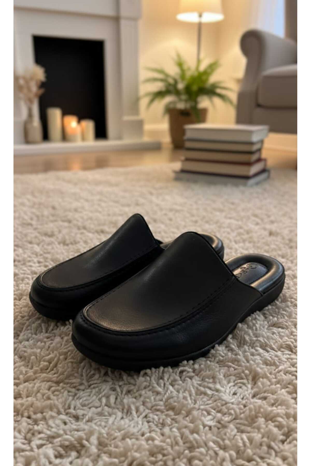 Armalı Deri Terlik pc-289 ceyizlik ev comfort taban baba genç terligi şık tasarım