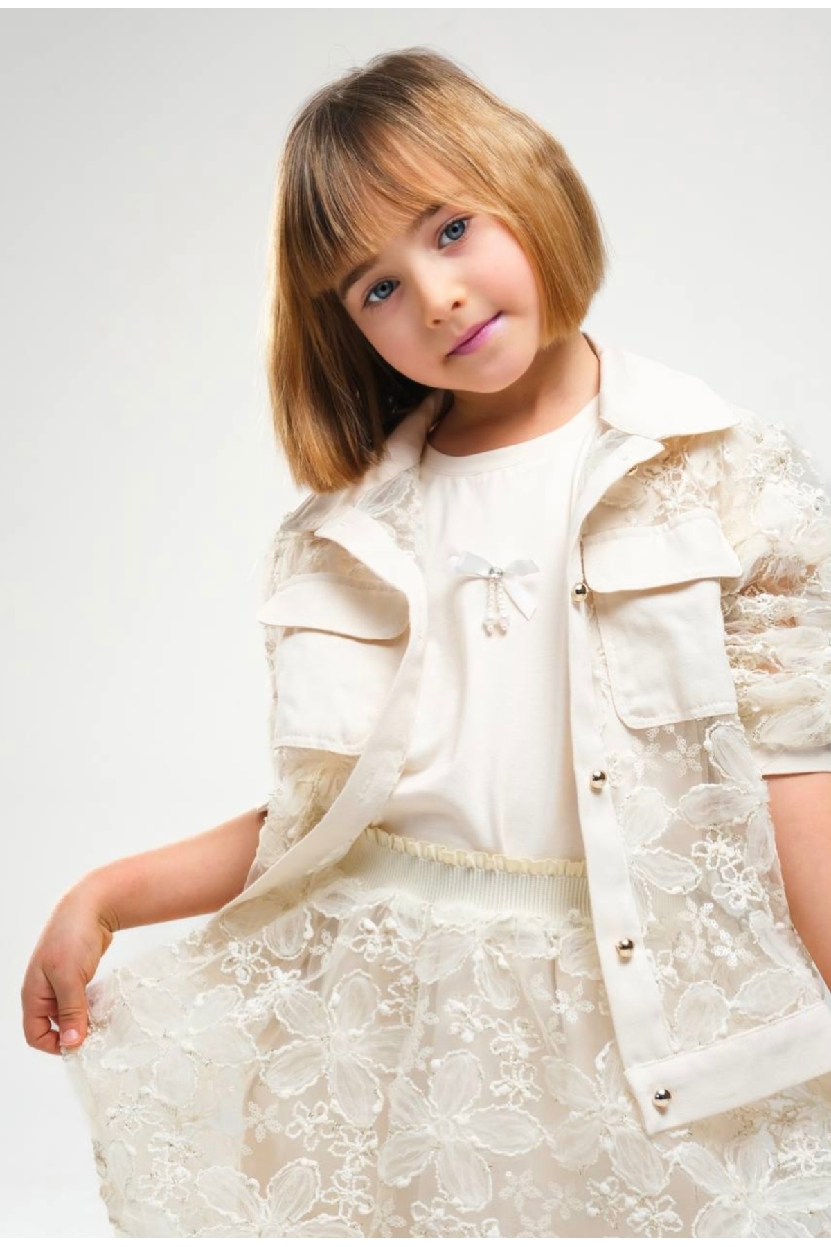 LİMİ kız çocuk yumuşak dokulu ceket etek t-shirt 3 parça takım