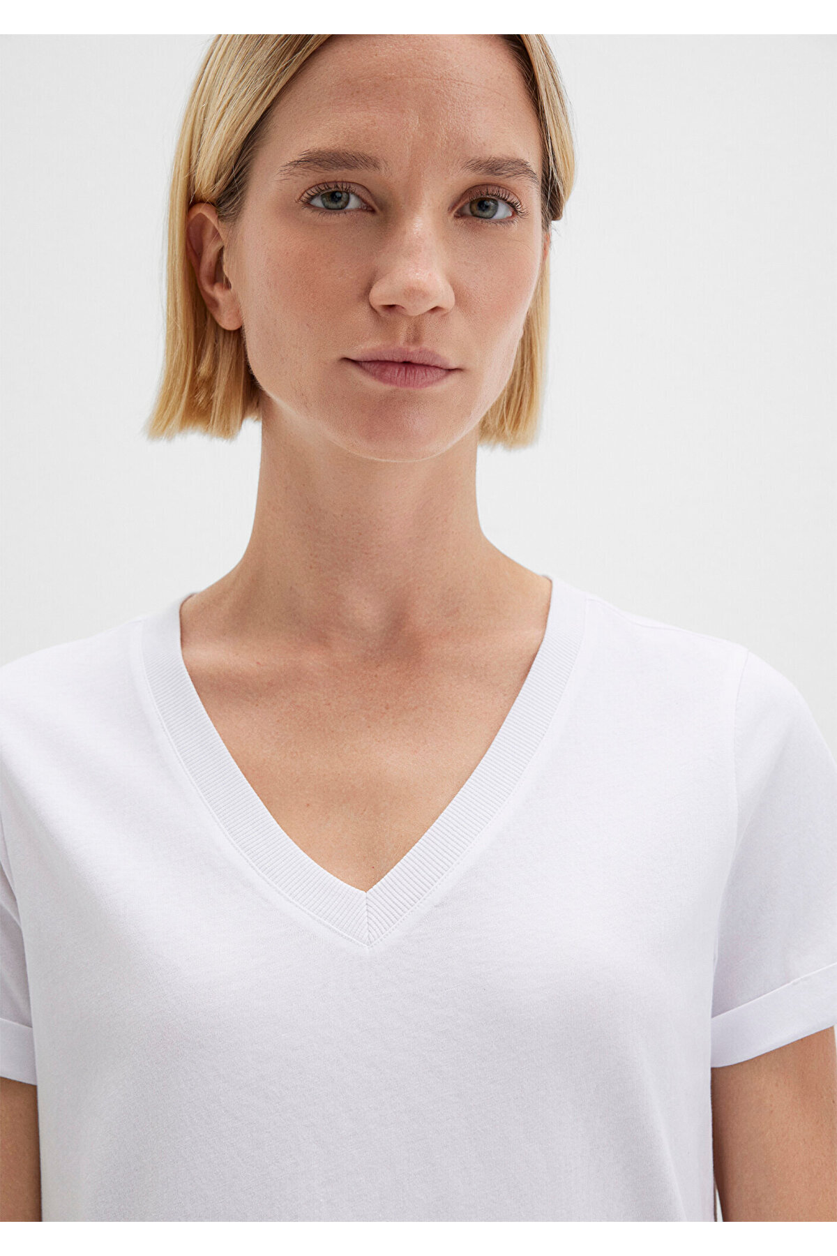 V Yaka Beyaz Basic Tişört Regular Fit / Normal Kesim 166248-620