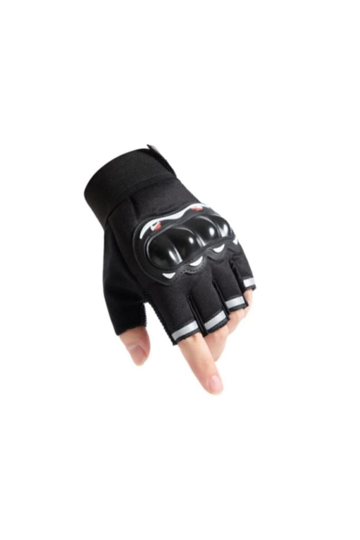 Unisex Korumalı Yarım Bisiklet Motorsiklet Eldiveni Parmaksız Reflektörlü