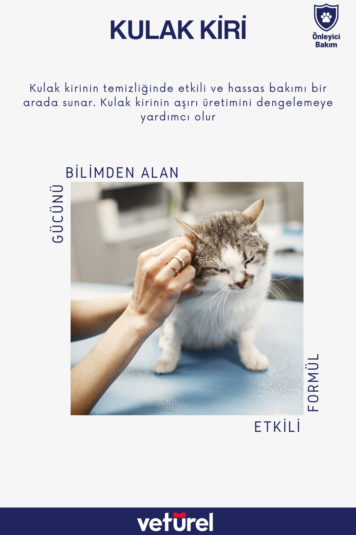 Vetürel Kedi Köpek Kulak Bakım Damlası 100 ml GÜVENDİĞİNİZ UZMAN VETERİNER FORMÜLÜ TÜM EVCİL HAYVANLARIN GÜNLÜK KULAK BAKIM İHTİYACINI KARŞILAMAK İÇİN YENİDEN GELİŞTİRİLDİ Evcil hayvanlarda fazla kulak kiri salgılanması ve kulak uyuzu gibi medikal sorunlar gelişebilir.