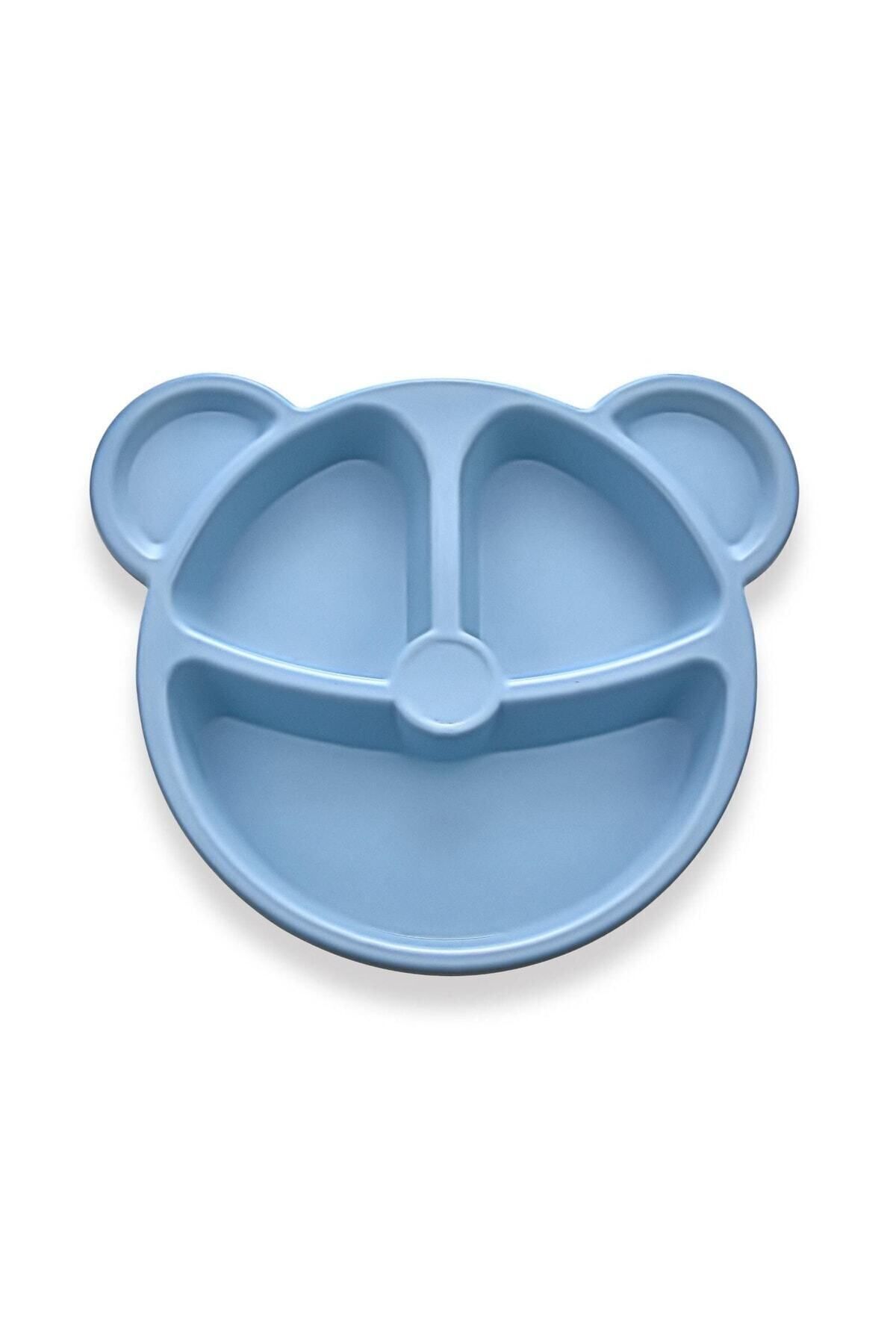 Mavi Ayıcık Şekilli Mama Yemek 3 Bölmeli Eğlenceli Çocuk Bebek Kahvaltı Yemek Tabağı