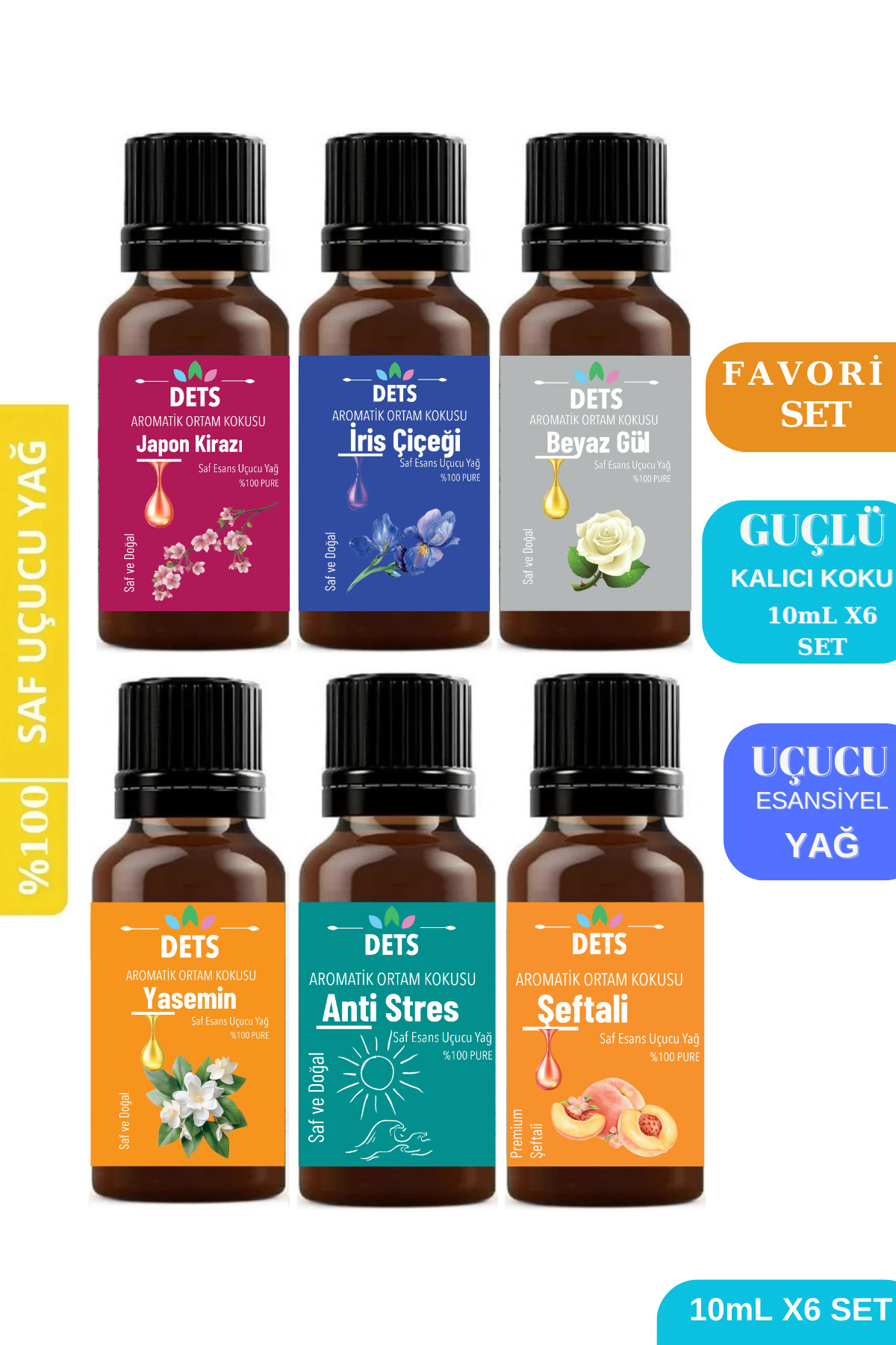 Doğal 6'lı Aromaterapi Uçucu Yağ Seti Huzur Zarafet Ve Feminen Dokunuş Için %100 Doğal Yağlar