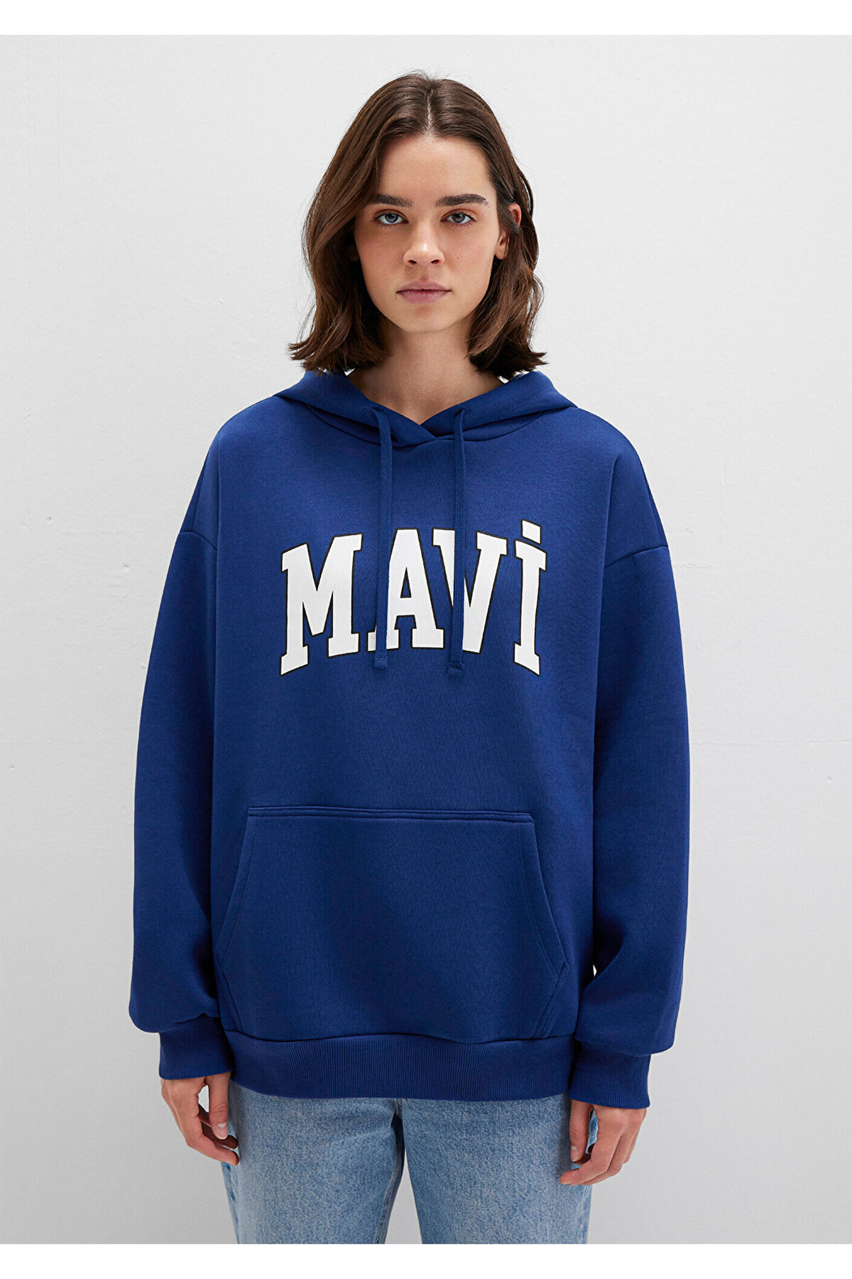 Mavi nin kadın koleksiyonundan Mavi Logo Baskılı Kapüşonlu Lacivert Sweatshirt.