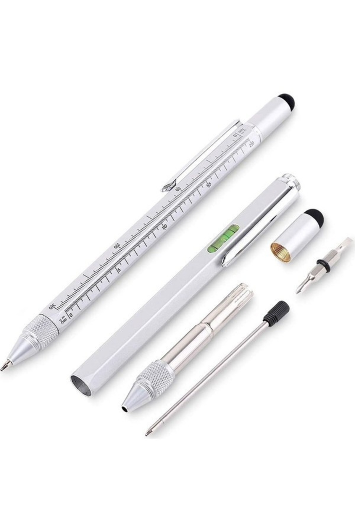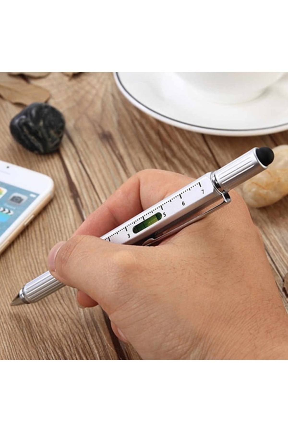 YCLSHOP Su Terazili Cetvelli Tornavidalı Mühendis Kalemi Gri Metal malzemeden üretilmiştir. Cetvel özelliği ve su terazisi özelliği yer almaktadır. Kalem arka kapağı altında yıldız ve düz tornavida aparatı mevcuttur. Tablet ve telefon kalemi özelliğine sahiptir. Kalem ucu orta kalınlıkta olup pilot kalem tarzında yazmaktadır.