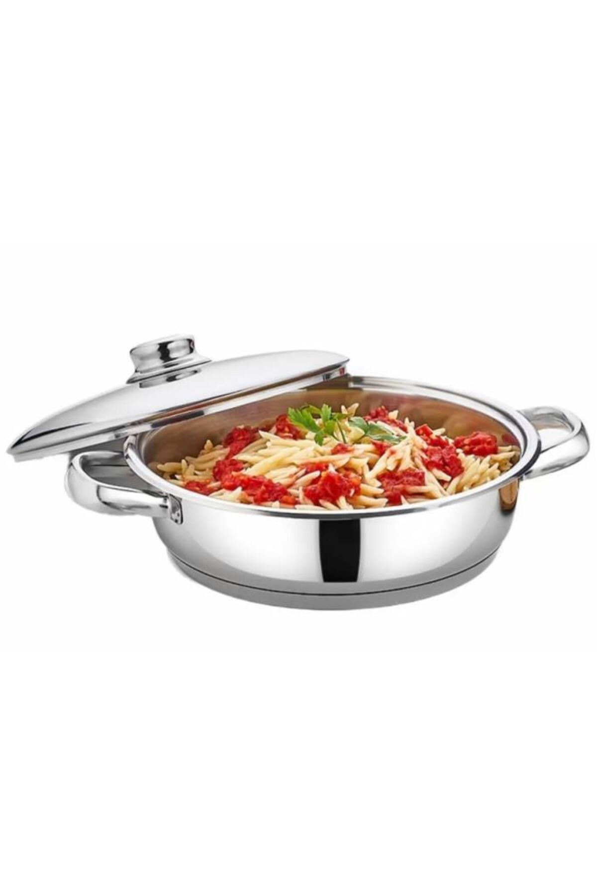 Mega Basık Paslanmaz Çelik Pilav Tenceresi 24 CM