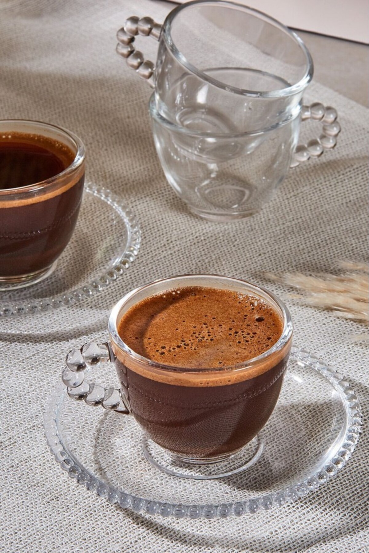 - Her bir fincan set içerisinde 6 adet cam fincan bulunur, böylece misafirlerinize aynı anda sıcak kahve ikramında bulunabilirsiniz.