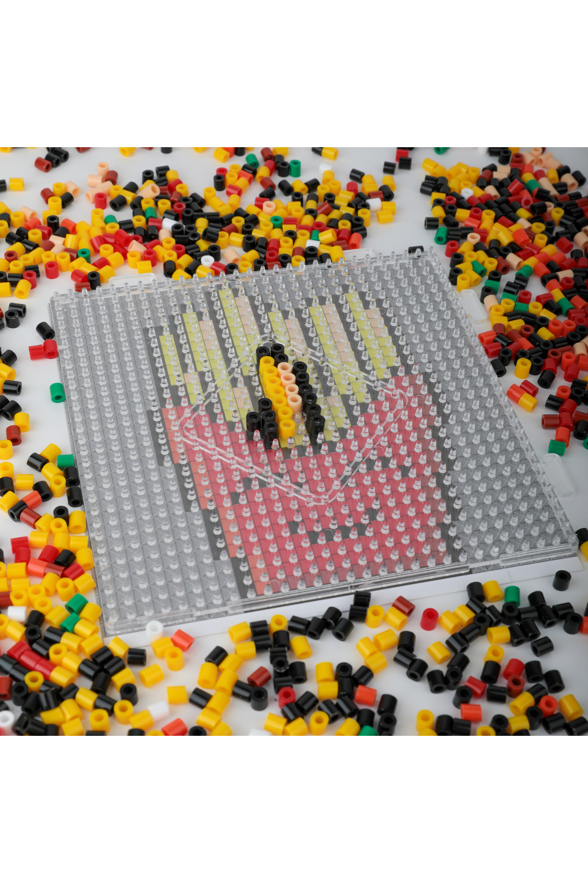 Özel tasarımlı kutuda 2.000 adet renkli boncuk1 adet büyük boncuk tablası (14,5*14,5 cm),1 adet ütü kağıdı,1 adet cımbız,1 adet kılavuz (ürünün yapılışını gösteren yönerge).