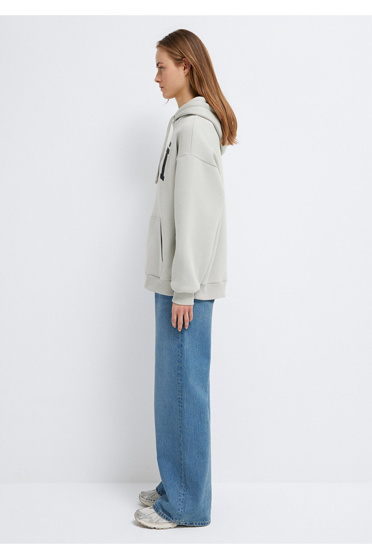Mavi nin kadın koleksiyonundan Mavi Logo Baskılı Kapüşonlu Gri Sweatshirt.
