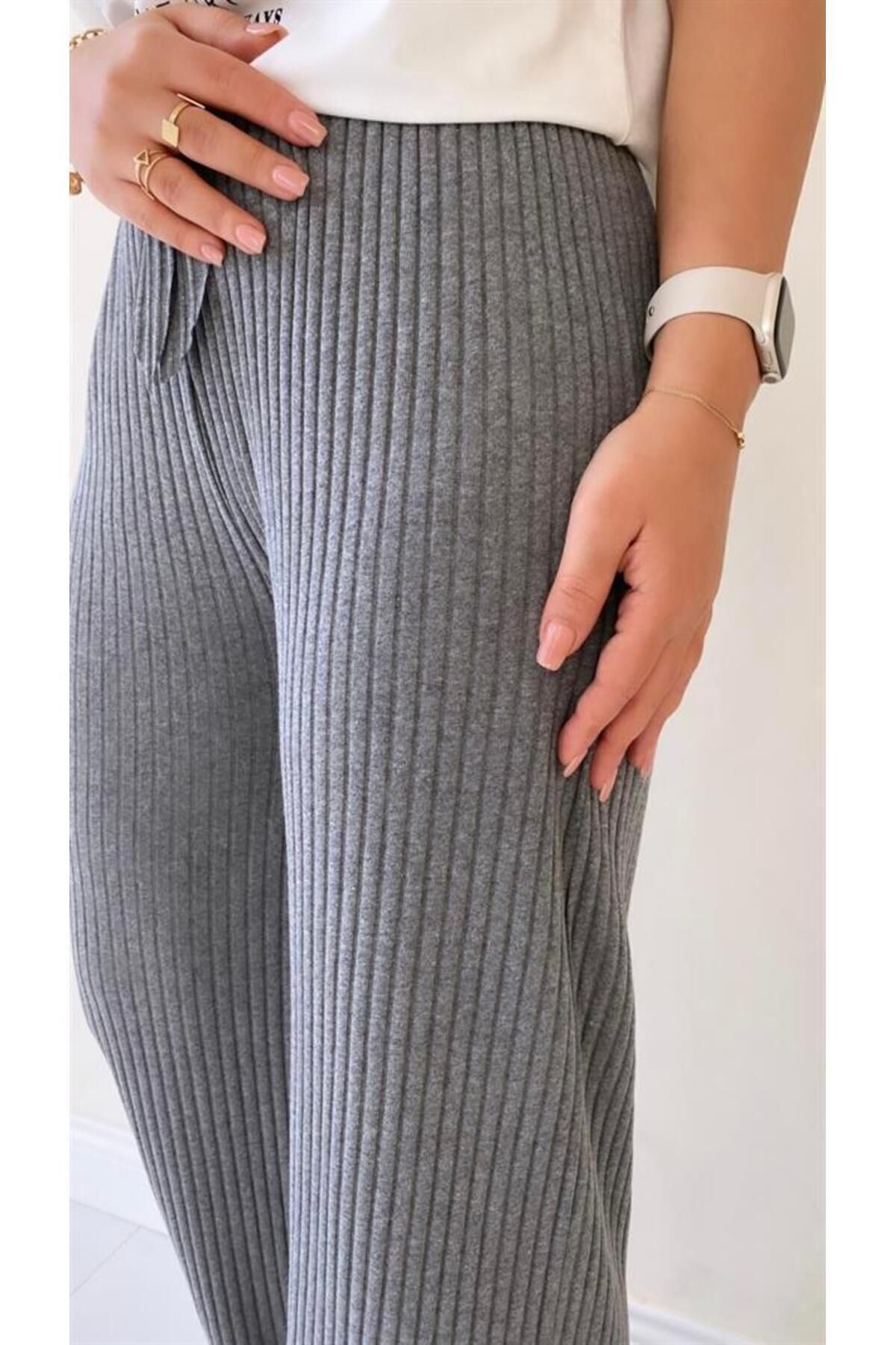 3'lü Füme - Camel- Siyah Kadın Fitilli Raporlu Pantolon & Eşofman, Gündelik Ev Giyim Pijama