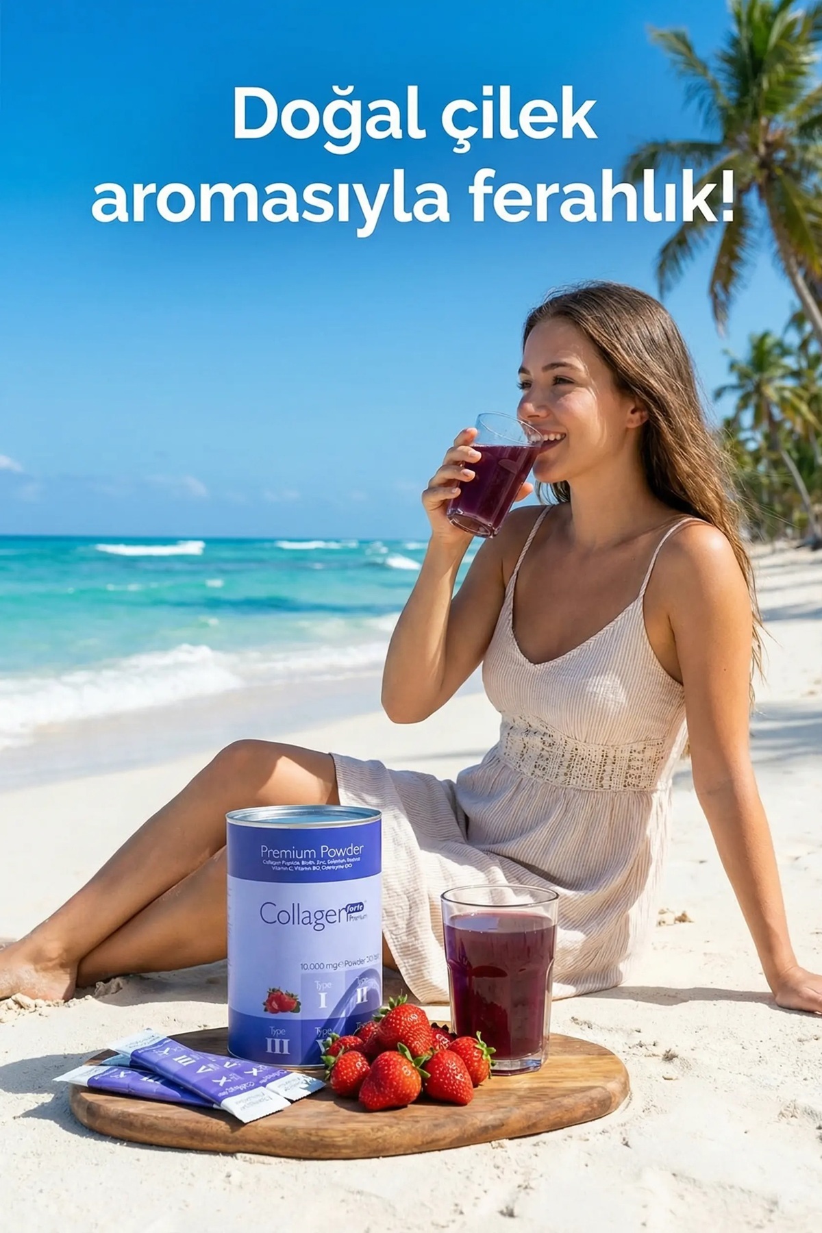 Premium Kolajen Powder 10g X 30 Şase Biotin & Multivitamin Çilek Aromalı