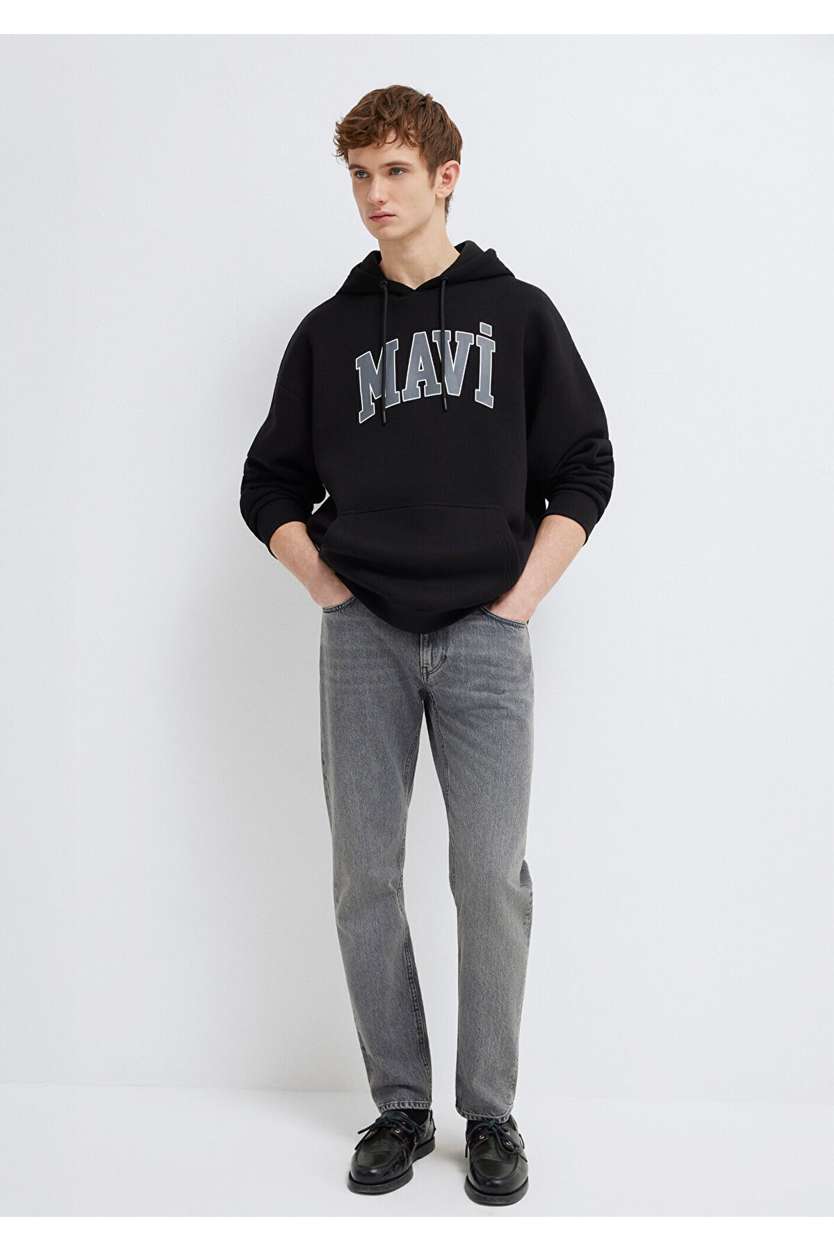 Mavi nin erkek koleksiyonundan Mavi Logo Baskılı Kapüşonlu Siyah Sweatshirt.