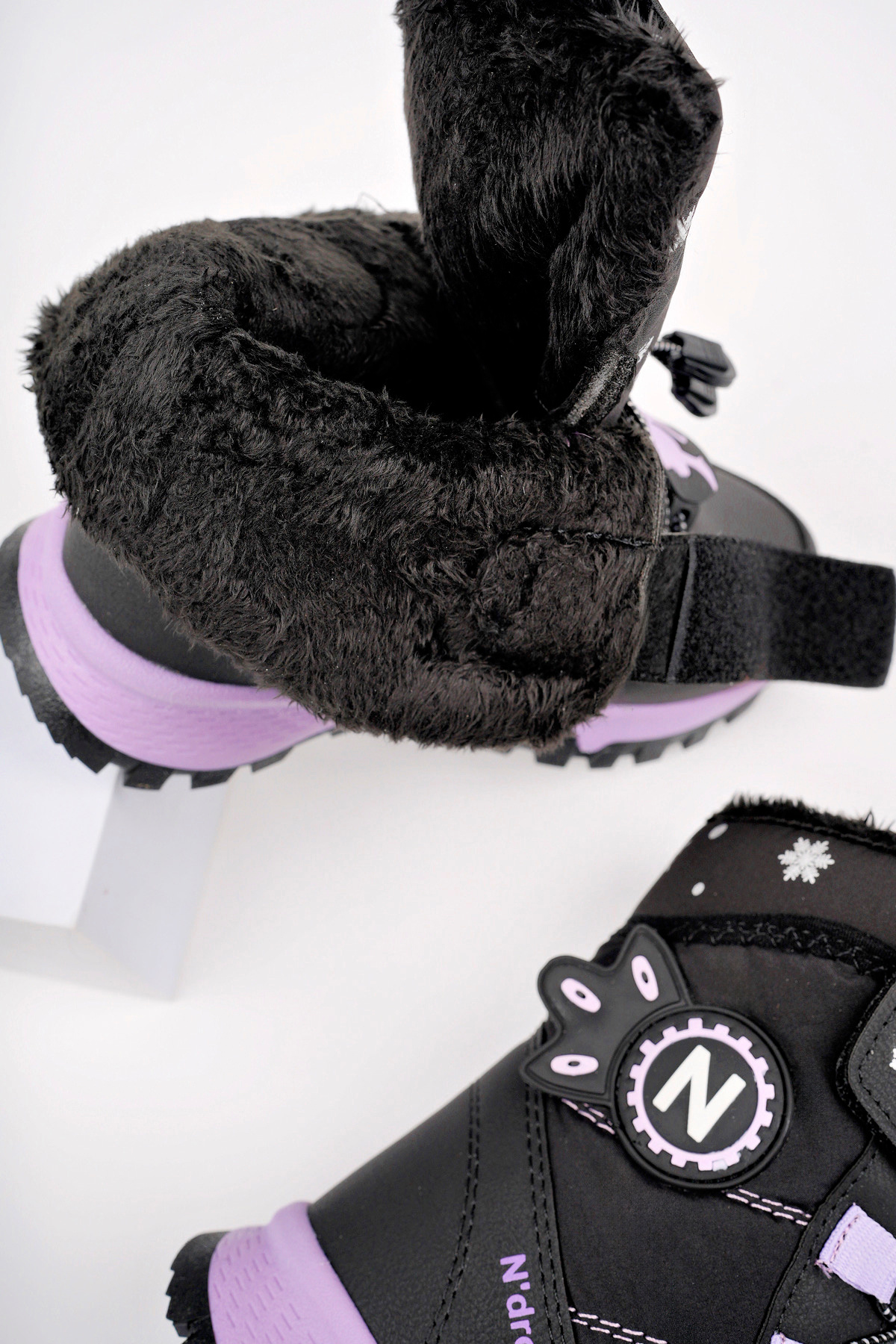 Dayanıklı, Ortopedik, Cırtlı, Siyah-Lila Kız Çocuk Kar Botu Ayakkabı