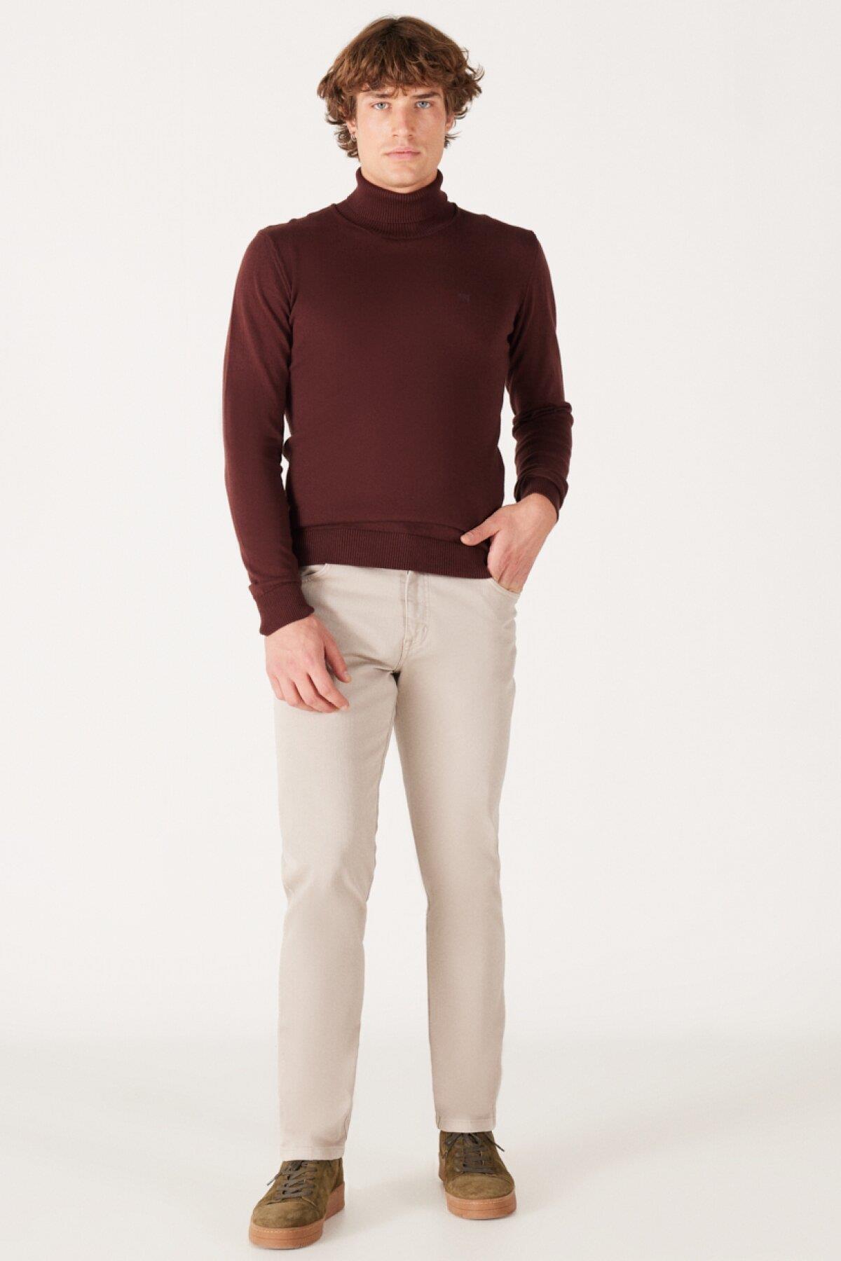 Balıkçı Yaka Kırmızı Erkek %100 Pamuk Kazak W8D42PH45