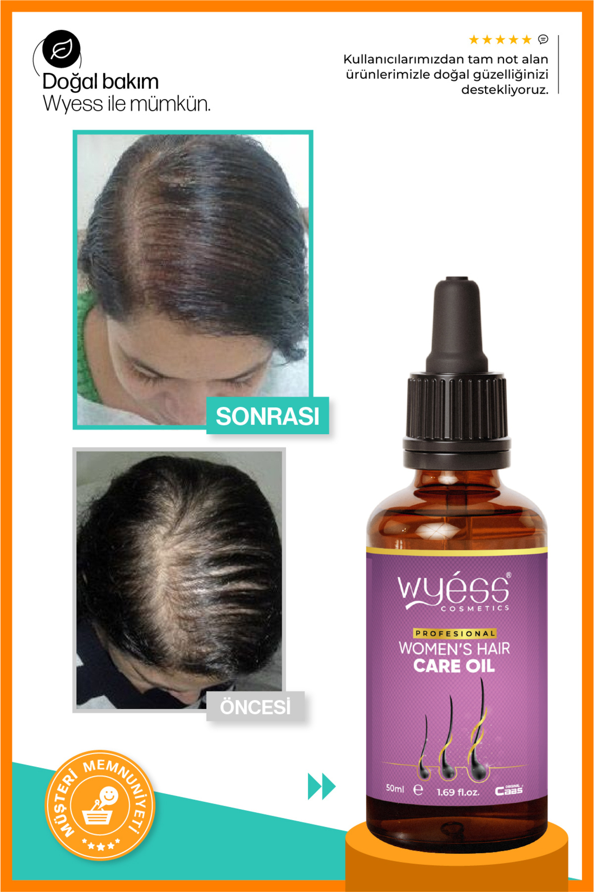 Kadın Saç Bakım Yağı - Dökülme Karşıtı, Saç Çıkarıcı & Besleyici Etki, E & A Vitaminli 50 ml, kadınların saç bakımı ihtiyaçlarına özel olarak formüle edilmiş, etkili ve doğal içeriklerle zenginleştirilmiş bir üründür.