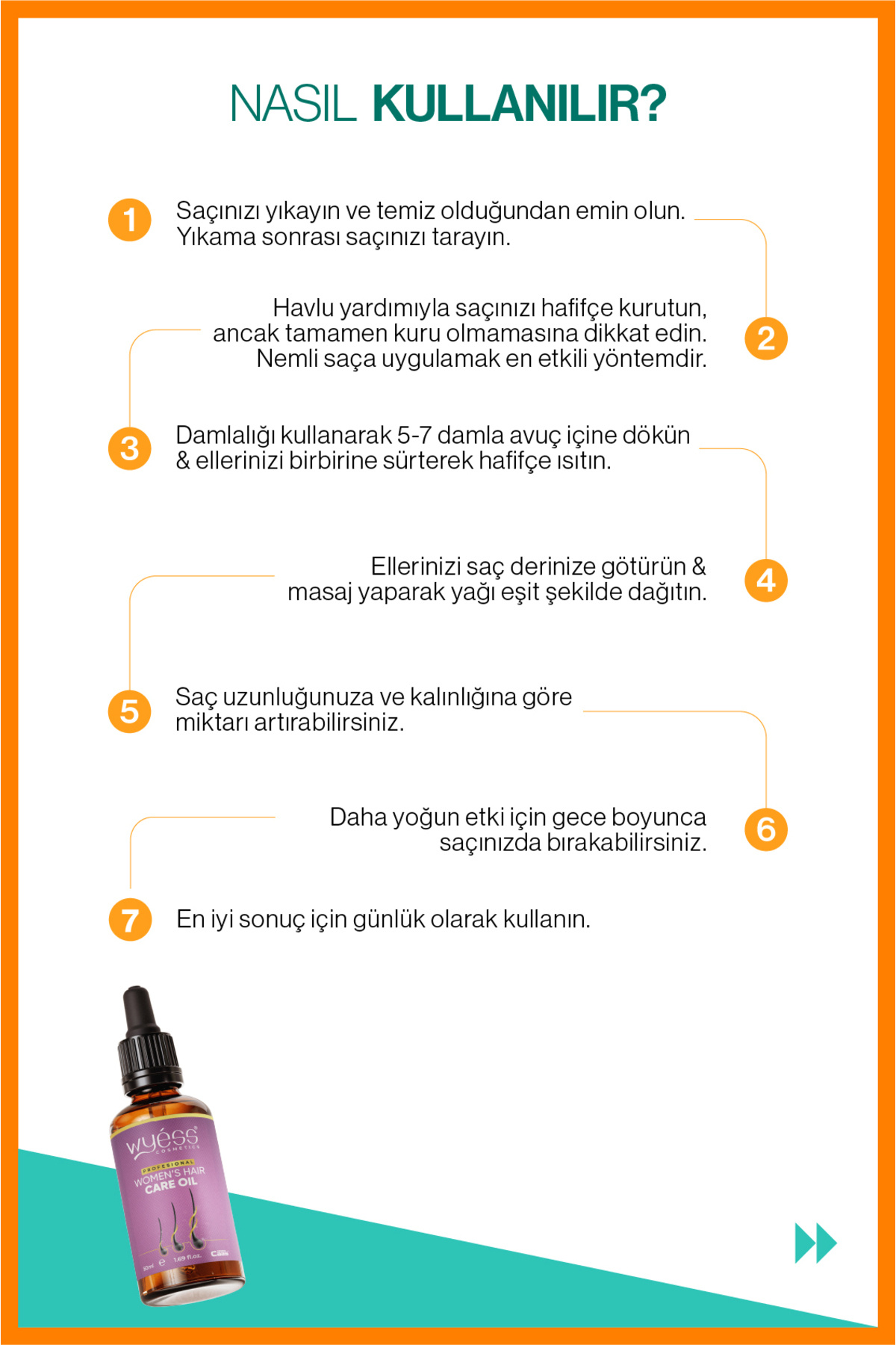 Kadın Saç Bakım Yağı hızlı emilen formülü ile saçı ağırlaştırmadan, derinlemesine bakım yapar.