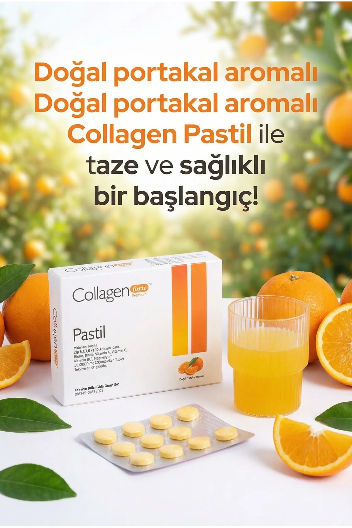5 Tip Kolajen 2000mg X 30 Emilebilen Tablet, Biotin, A, C Vitamini, B12, Magnezyum, Portakal Aromalı