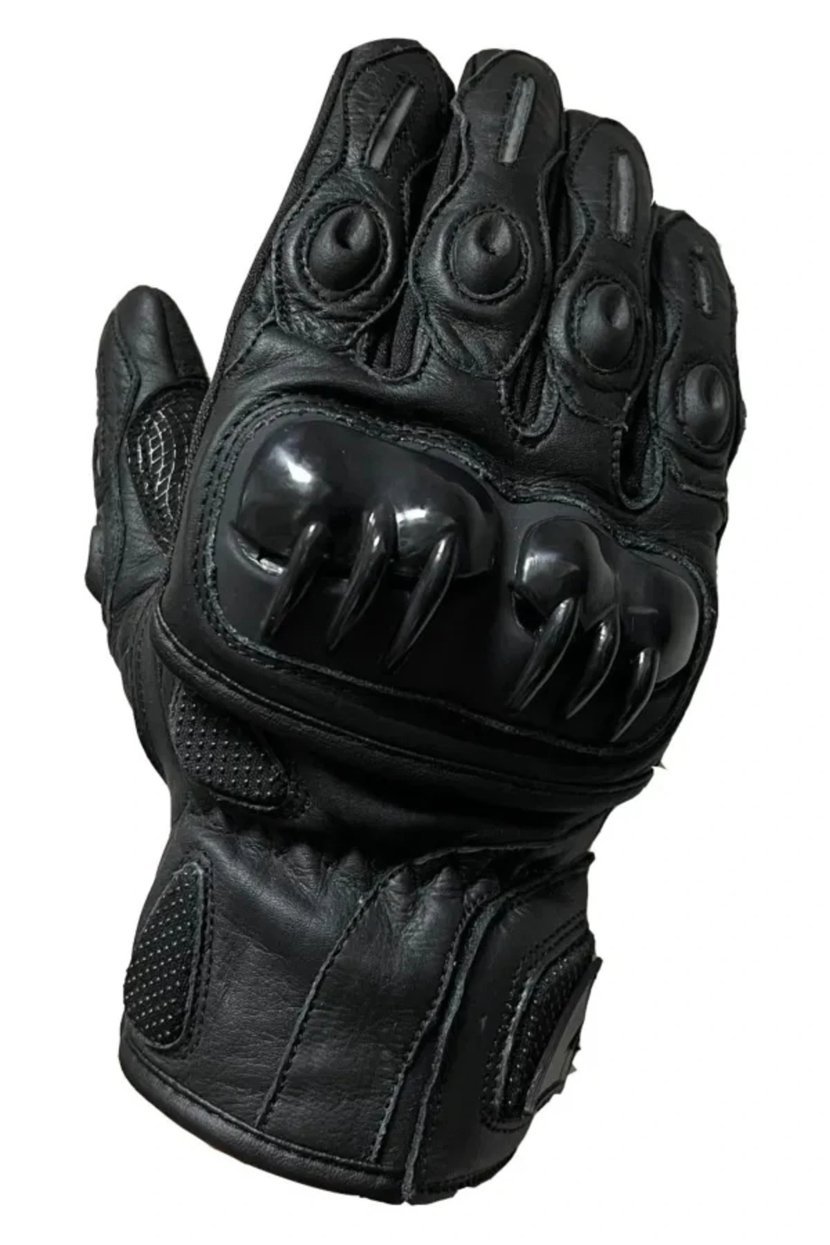 VN-9021 Gerçek Deriden Eklem Korumalı Siyah Motorcu Eldiveni