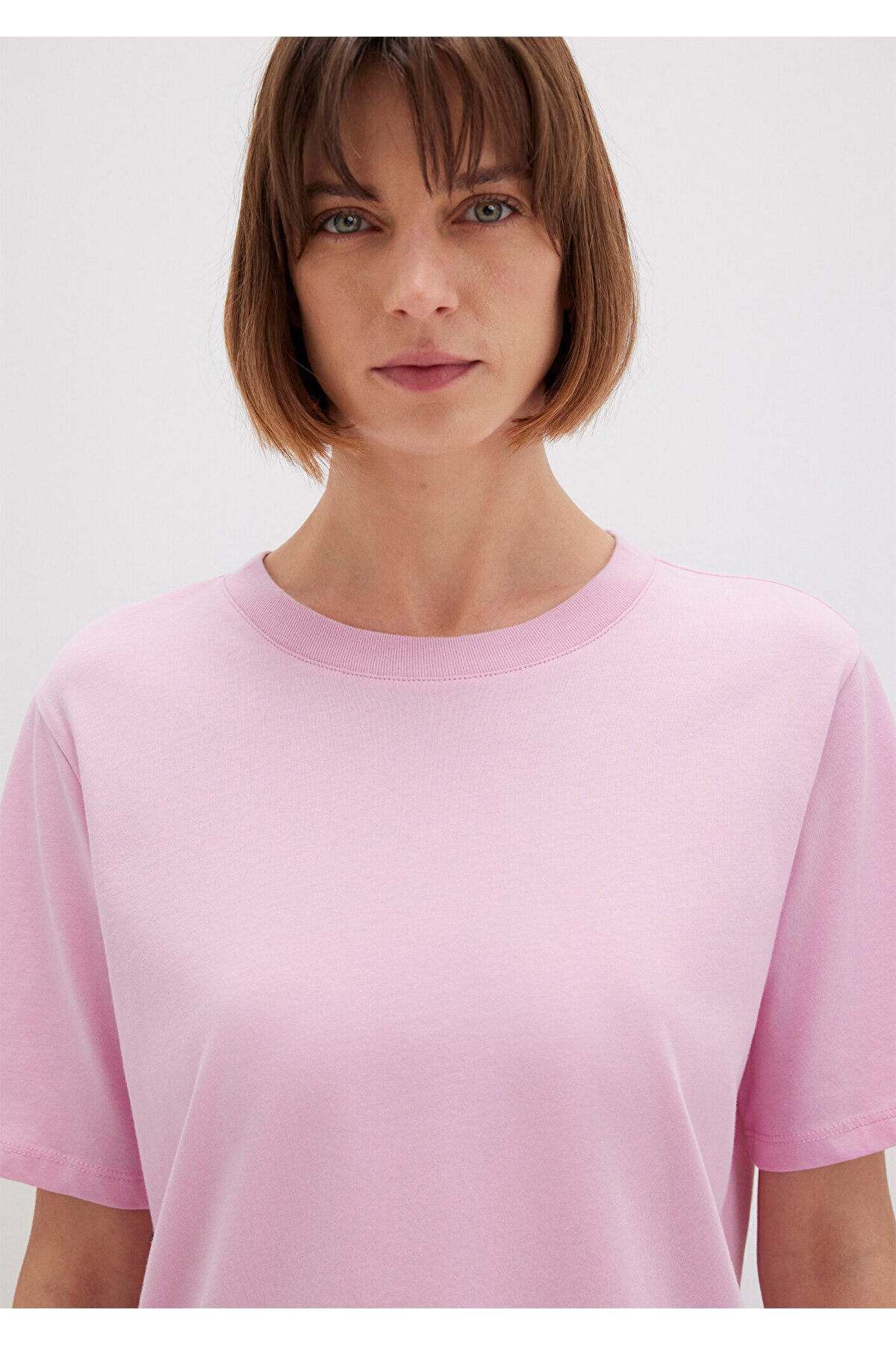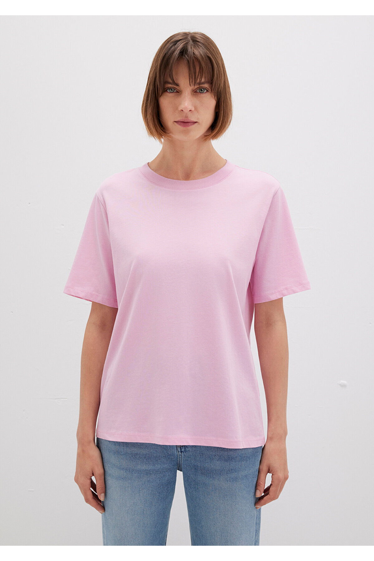 Bisklet Yaka Pembe Basic Tişört Regular Fit / Normal Kesim 1600955-71117