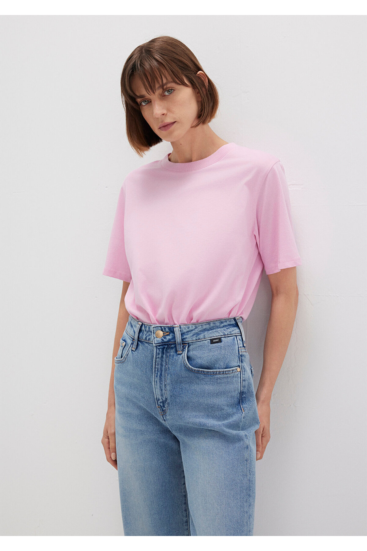 Bisklet Yaka Pembe Basic Tişört, yüzde yüz pamuklu orta ağırlıkta kumaştan üretilmiştir.