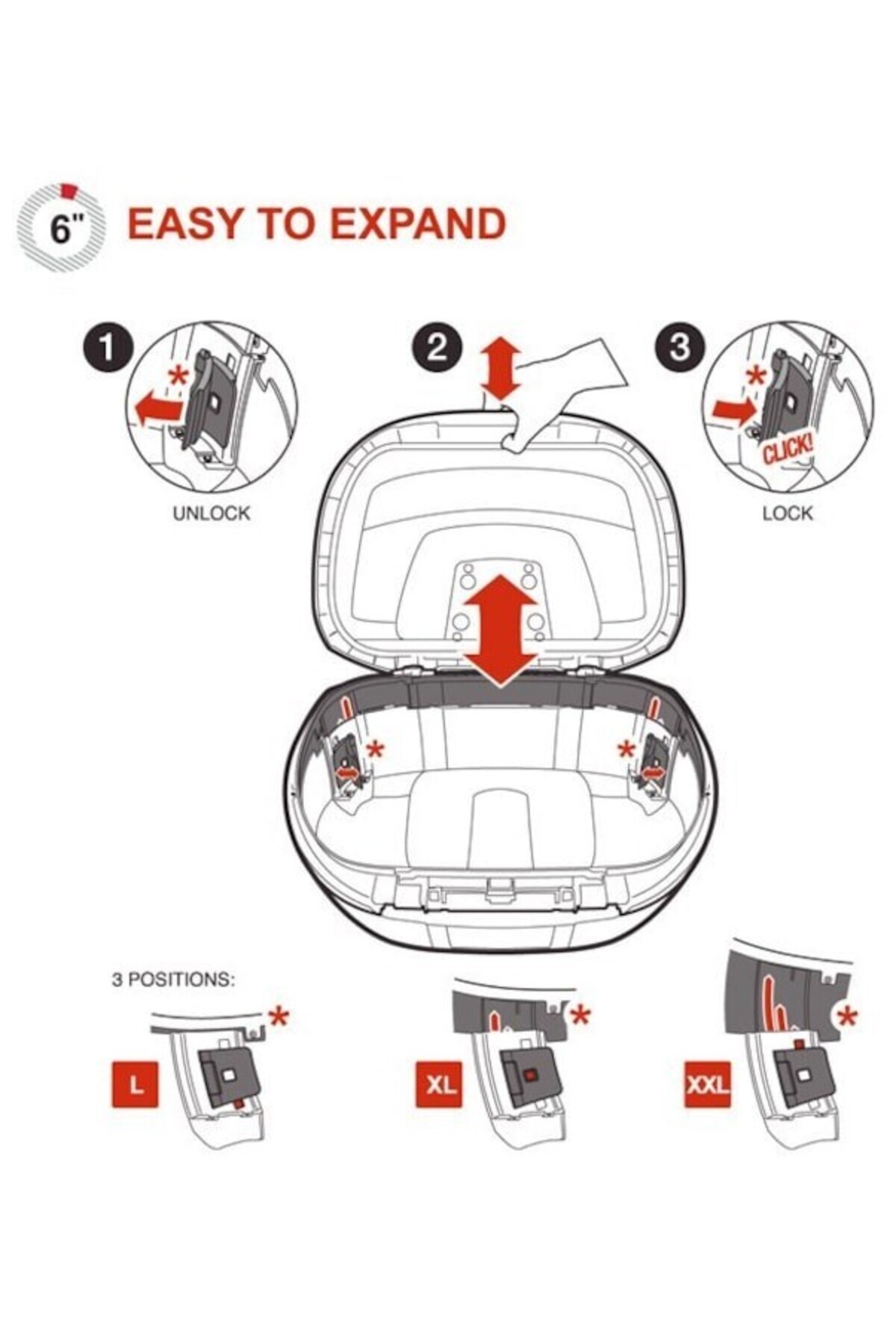 Kademe son moda alındığında ise 58 litrelik bir motosiklet çantası olan SHAD SH-58X Arka Çanta en büyük modda ve en küçük modda iken tasarımından ve modernliğinden hiç bir kayıp vermeden kullanılabilmektedir.