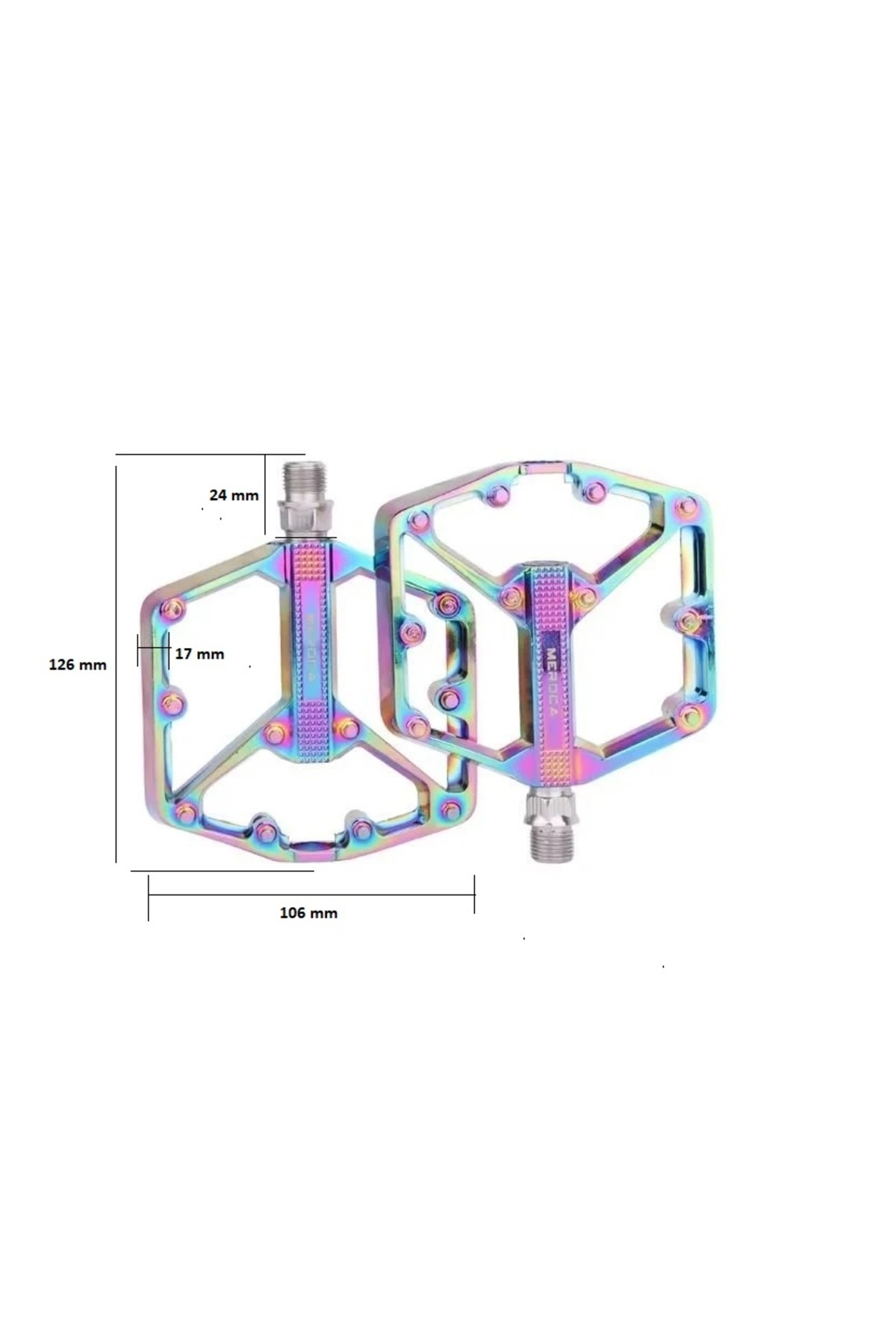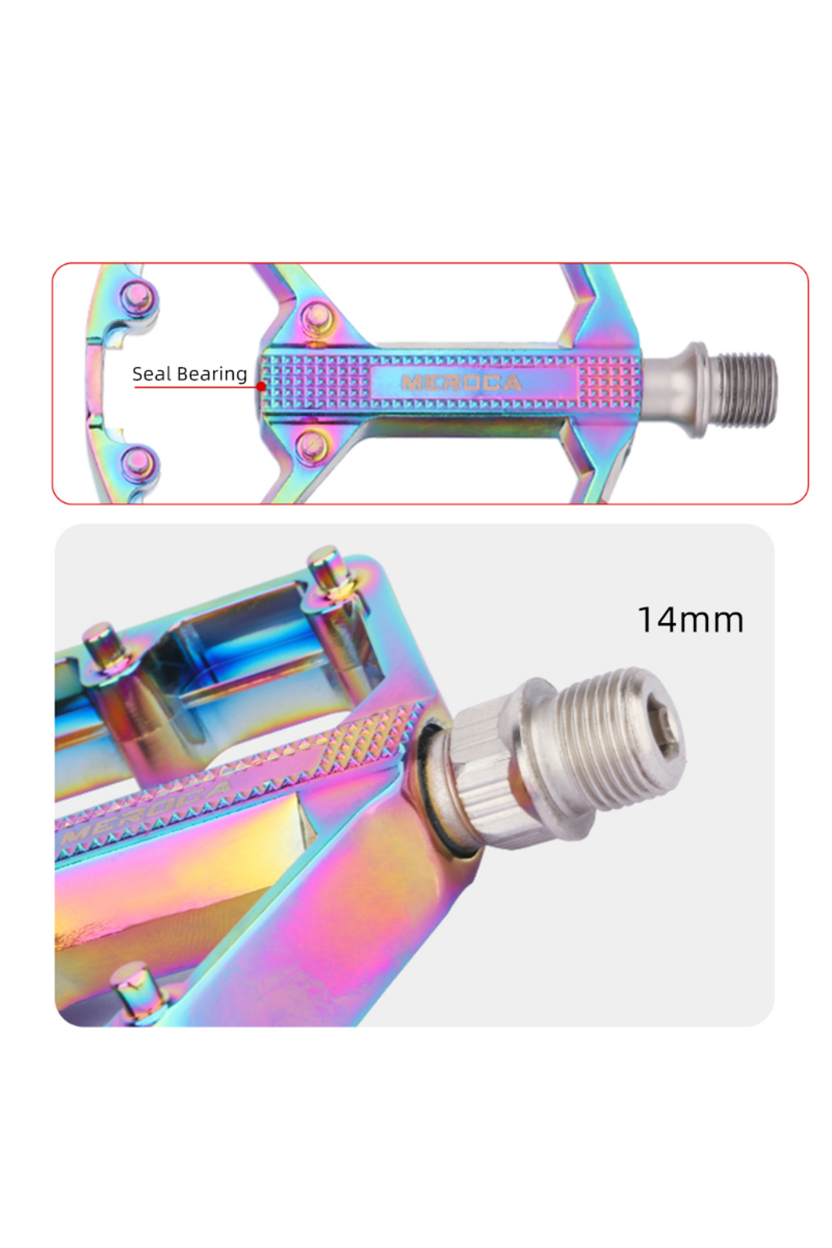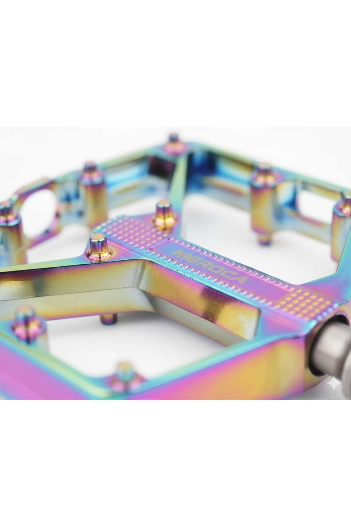 Meroca Rainbow Alüminyum Platformlu Rulmanlı Bisiklet Pedalı Model: Meroca rulman/du pedalı Tipi: Rulman + DU/3 rulman/çift du Gövde malzemesi: Naylon poliamidler Mil malzemesi: Cr-mo çelik Boyutu: 106mm * 126mm Ağırlık: Yaklaşık 400g