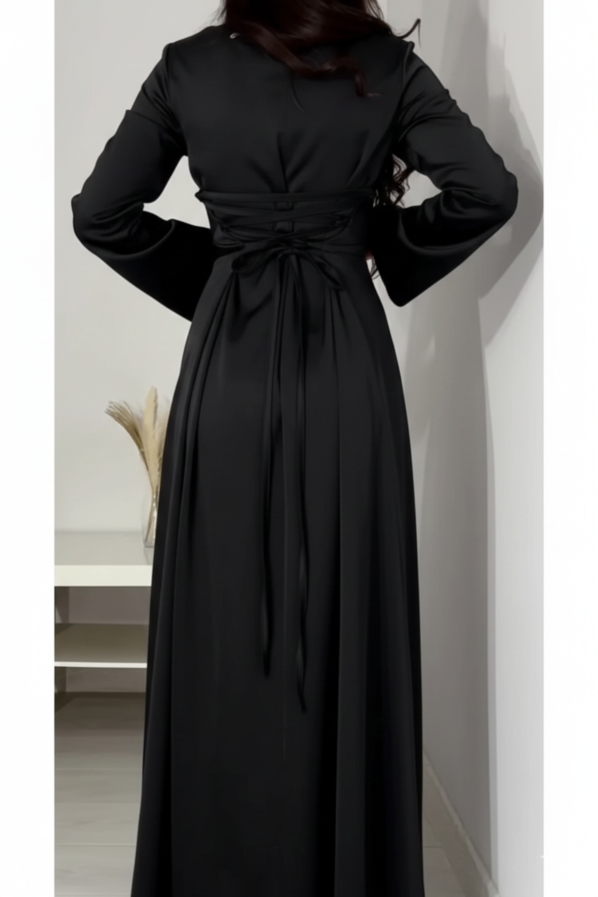 Arkadan İpli Tesettür Abiye Siyah 583291
