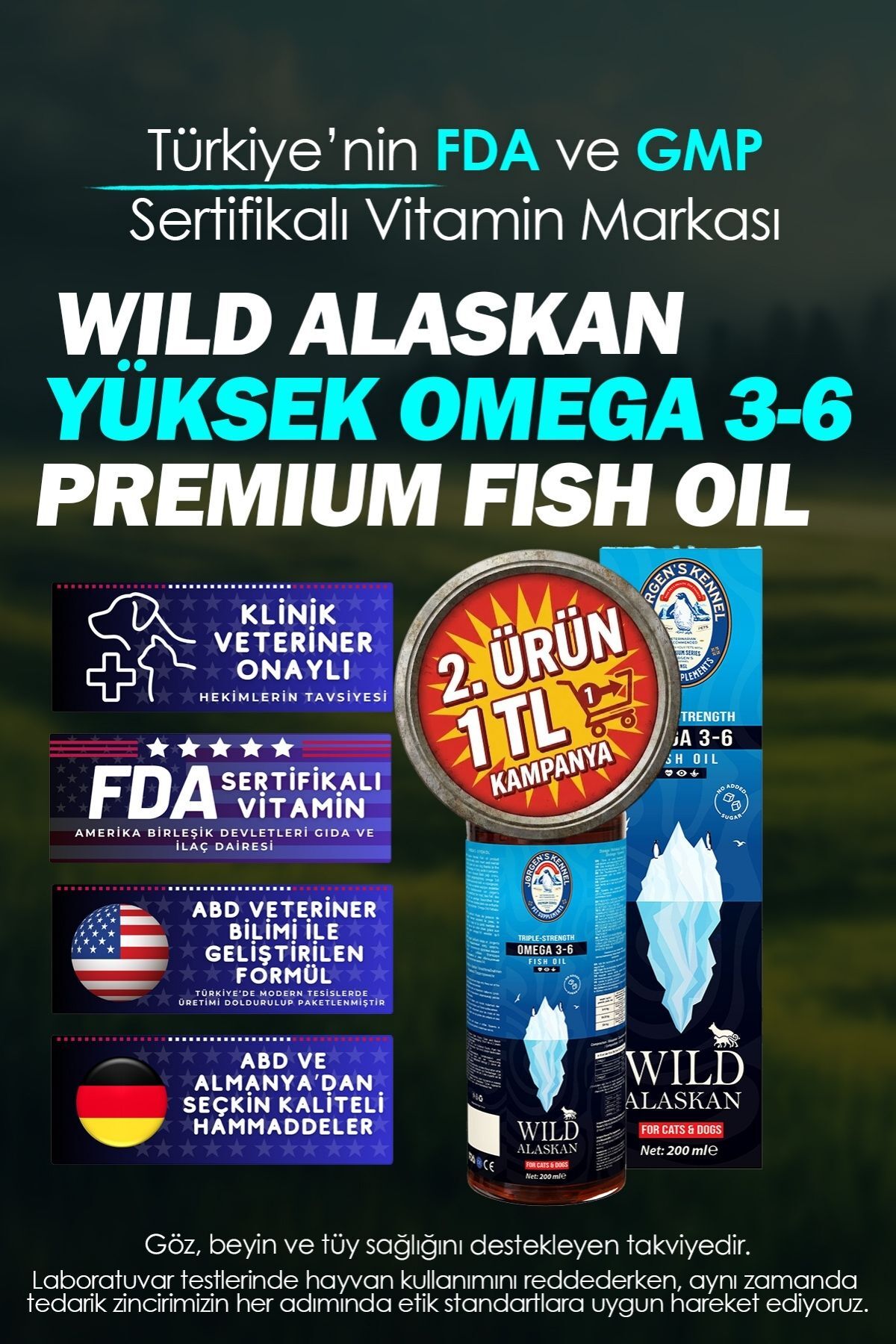 Kedinizin ve köpeğinizin sağlığı için en iyisini sunmak istiyorsanız, Jorgen's Kennel'in Doğal Omega 3-6 Wild Alaskan Triple Strength Balık Yağıtam size göre.