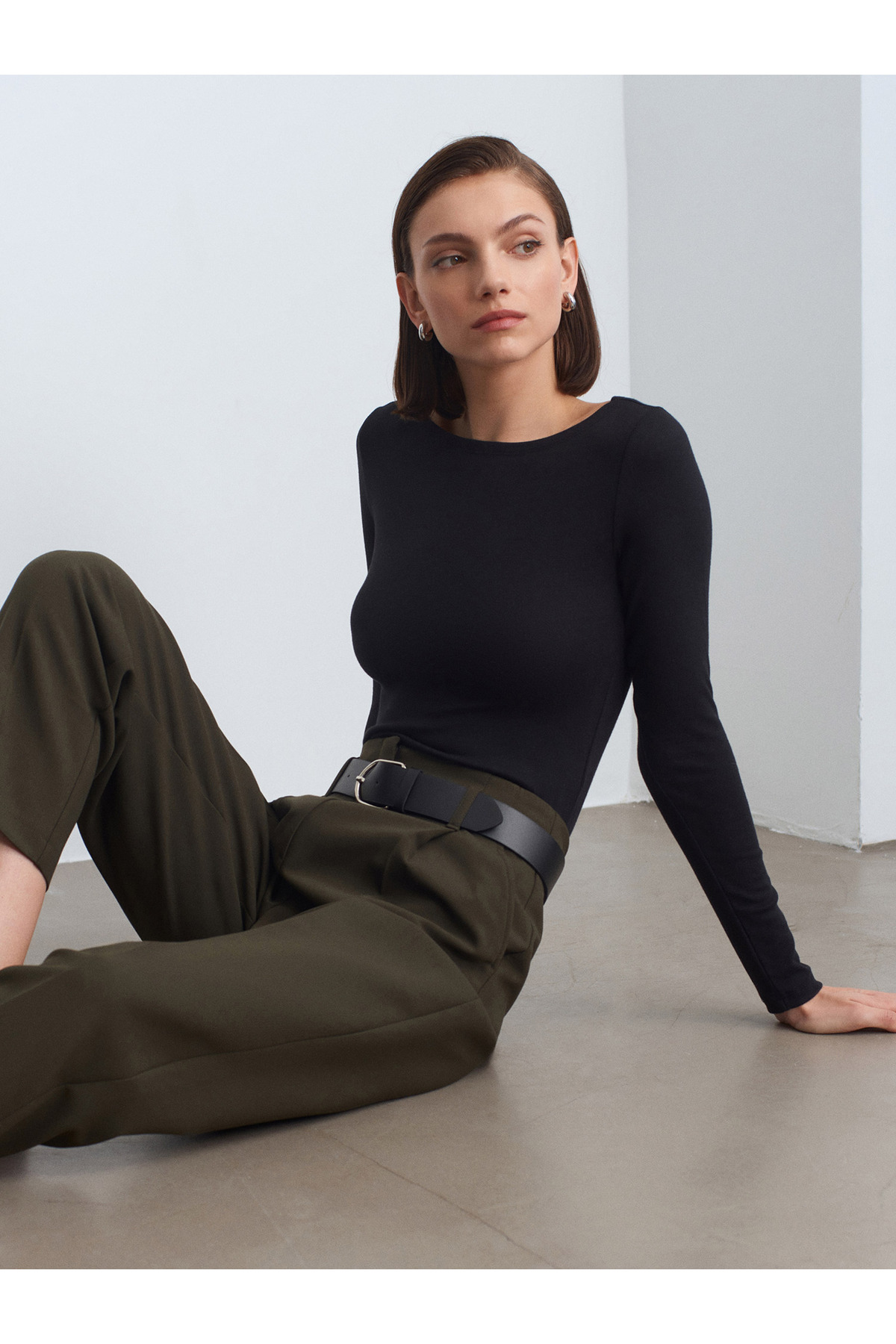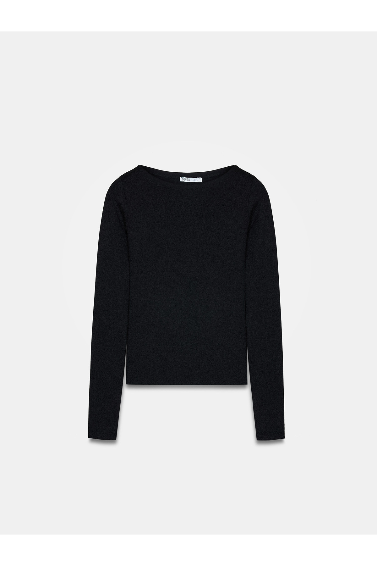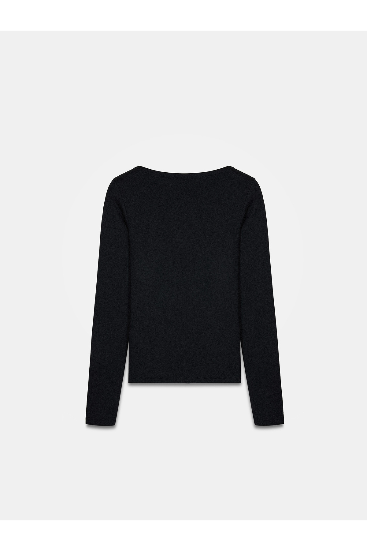 31332 Kayık Yaka Uzun Kollu Top-Siyah