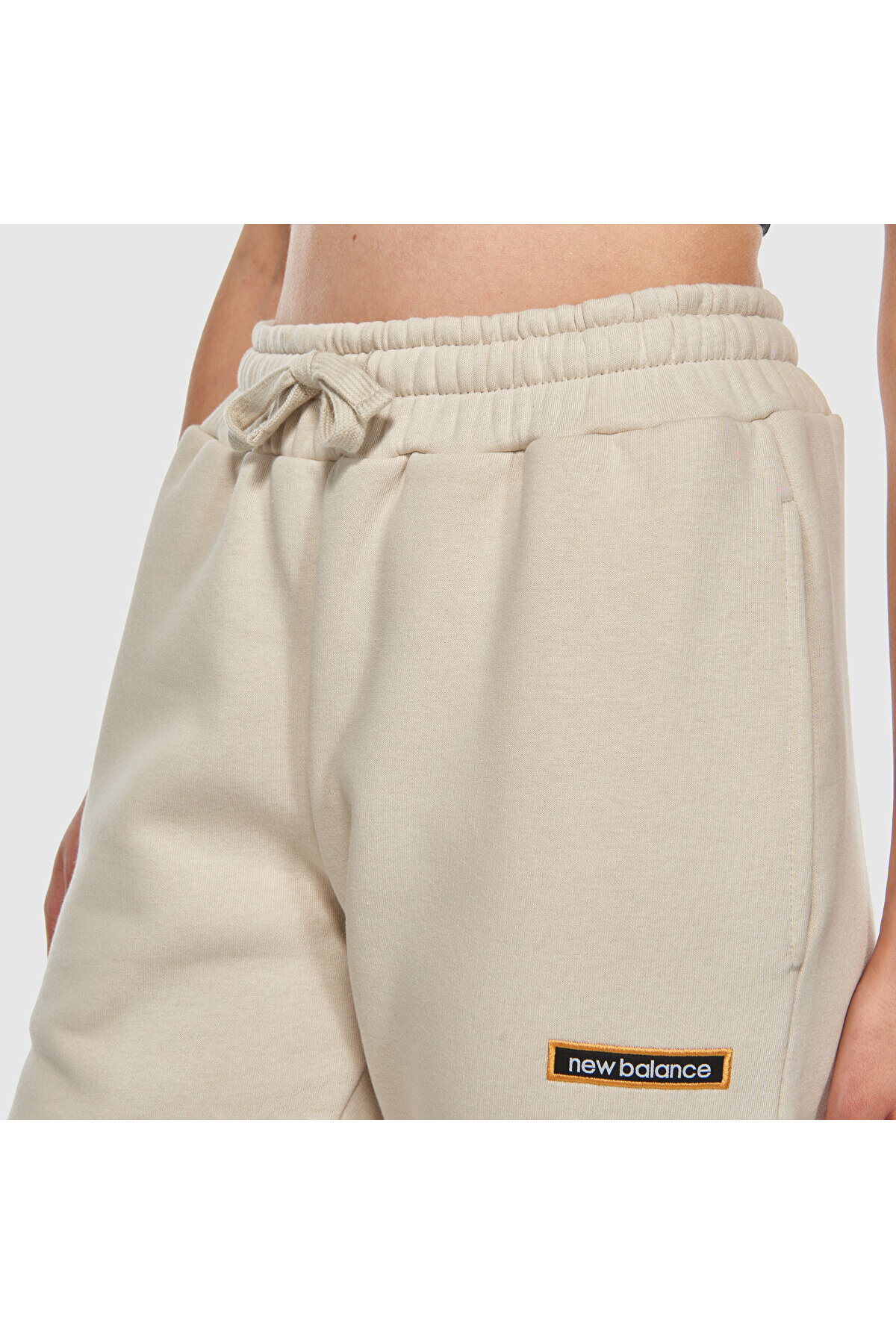 Giyildiğinde ön sol bacakta New Balance logo bayrak etiket